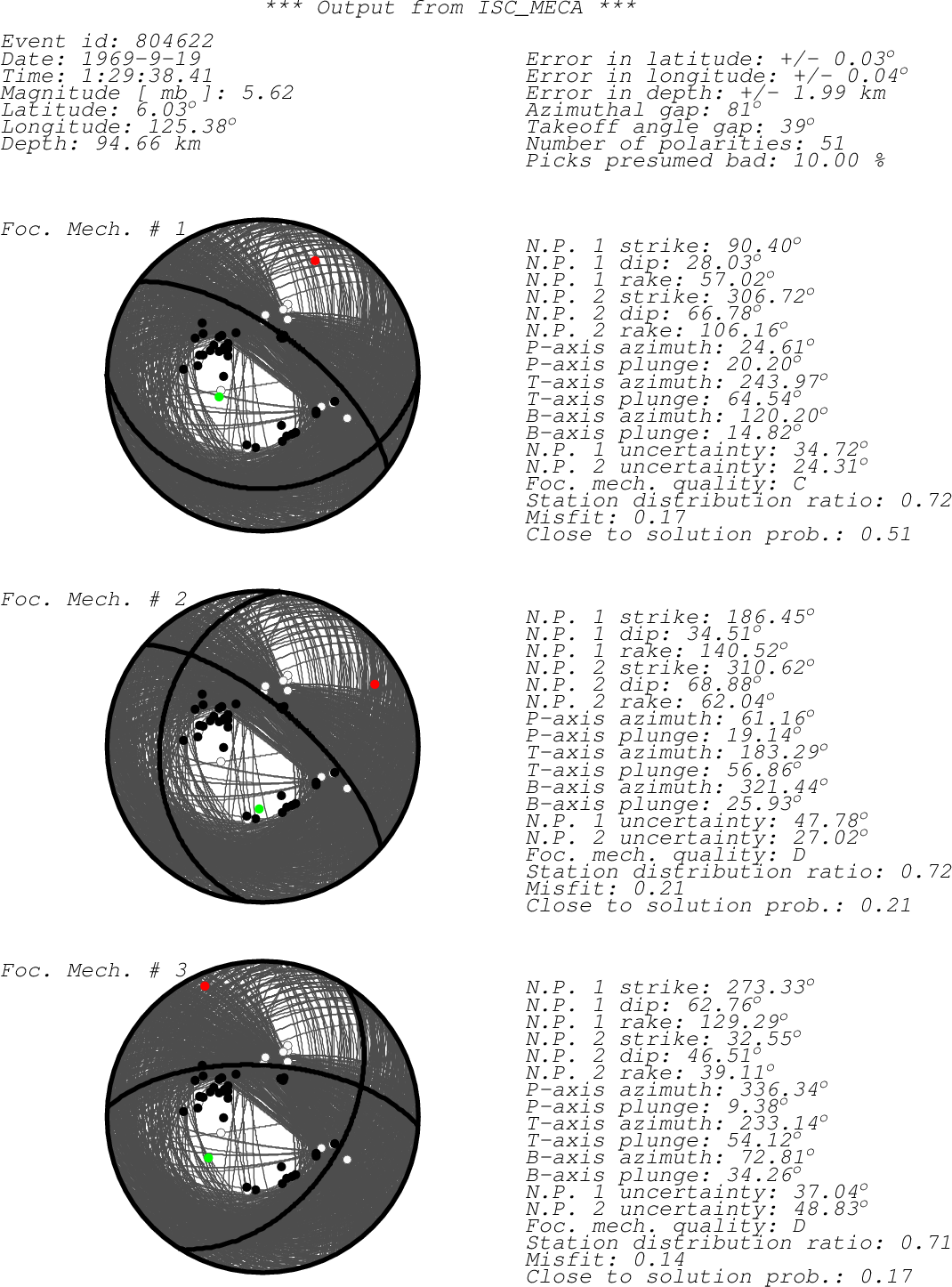 sta chan net loc pol a/m azi dist author irsta ANP ??? IR - 349.43 19.41 ISC ANP HKC ??? IR - 327.32 19.47 ISC HKC TBL ??? IR - 116.71 22.04 ISC TBL PLV ??? IR + 310.72 23.37 ISC PLV SNG ??? IR + 274.05 24.62 ISC SNG KET ??? IR + 110.53 28.54 ISC KET RAB ??? IR - 110.17 28.61 ISC RAB WAN ??? IR + 110.16 28.62 ISC WAN RAL ??? IR + 110.19 28.66 ISC RAL TAV ??? IR - 110.20 28.68 ISC TAV CHG ??? IR + 298.65 28.72 ISC CHG KOA ??? IR - 111.45 32.55 ISC KOA MAT ??? IR - 19.40 32.57 ISC MAT MEK ??? IR - 191.24 33.12 ISC MEK KLG ??? IR + 185.64 36.79 ISC KLG SHL ??? IR + 304.95 37.45 ISC SHL MUN ??? IR + 192.48 38.79 ISC MUN KMU ??? IR - 20.75 39.30 ISC KMU ADE ??? IR + 163.77 42.67 ISC ADE YSS ??? IR - 17.31 43.43 ISC YSS KOU ??? IR + 125.73 46.46 ISC KOU RIV ??? IR + 150.09 46.55 ISC RIV LUG ??? IR - 117.87 46.57 ISC LUG CAN ??? IR + 153.27 46.76 ISC CAN HYB ??? IR + 288.11 47.10 ISC HYB TOO ??? IR + 158.16 47.26 ISC TOO KOD ??? IR + 278.31 47.58 ISC KOD GBA ??? IR - 282.84 47.77 ISC GBA OUA ??? IR + 124.13 48.98 ISC OUA POO ??? IR + 288.78 51.68 ISC POO PET ??? IR - 24.13 54.17 ISC PET YAK ??? IR - 2.45 55.98 ISC YAK KAR ??? IR + 295.44 58.73 ISC KAR QUE ??? IR + 301.40 59.80 ISC QUE DSH ??? IR + 311.17 60.40 ISC DSH TAS ??? IR + 314.32 60.89 ISC TAS TIK ??? IR - 1.21 65.57 ISC TIK MCQ ??? IR + 159.40 66.51 ISC MCQ SVE ??? IR + 328.34 71.31 ISC SVE SHI ??? IR + 299.08 72.16 ISC SHI SRI ??? IR + 306.30 75.20 ISC SRI KER ??? IR + 303.77 76.93 ISC KER MAK ??? IR + 312.57 77.04 ISC MAK TAB ??? IR + 307.52 77.69 ISC TAB SVW ??? IR + 29.01 79.44 ISC SVW TAN ??? IR - 249.75 80.51 ISC TAN RAM ??? IR + 307.19 81.67 ISC RAM COL ??? IR - 25.40 83.23 ISC COL PJD ??? IR + 25.26 83.36 ISC PJD SCM ??? IR + 28.50 83.45 ISC SCM BLR ??? IR + 26.80 84.10 ISC BLR EIL ??? IR + 299.40 87.42 ISC EIL NAI ??? IR + 268.59 88.71 ISC NAI MBC ??? IR + 12.50 90.02 ISC MBC IST ??? IR + 311.26 90.88 ISC IST UZH ??? IR + 319.62 94.09 ISC UZH VAM ??? IR - 306.37 95.59 ISC VAM sta - Station code (FDSN) chan - channel code net - Network code (FDSN) loc - Location code (FDSN) pol - Polarity a/m - Automatic or manual pick azi - Event to station azimuth (in degrees) dist - Event to station distance (in degrees) author - Author of the polarity irsta - International registry station code