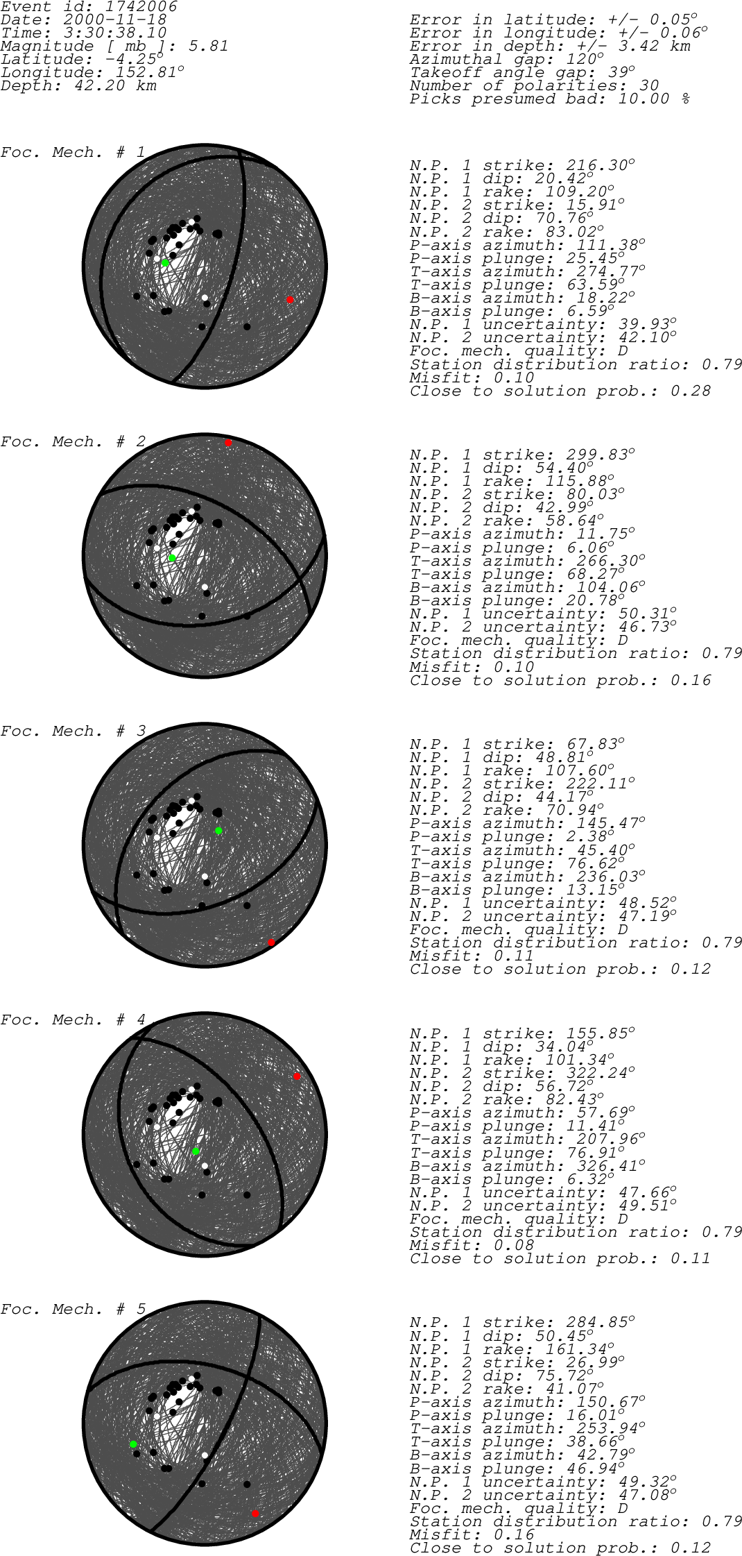 sta chan net loc pol a/m azi dist author irsta KAKA ??? IR c 246.07 21.82 NEIC KAKA NOUC ??? IR U 144.80 22.04 NOU NOUC ARMA ??? IR c 182.33 26.05 NEIC ARMA ASPA ??? IR c 221.64 26.57 NEIC ASPA BIPH ??? IR c 295.07 29.13 MAN BIPH FITZ ??? IR c 240.51 29.93 NEIC FITZ RCP ??? IR c 297.99 33.78 MAN RCP FORT ??? IR c 218.67 35.22 NEIC FORT TSM ??? IR c 283.24 35.92 KLM TSM NJ2 ??? IR C 320.65 48.43 BJI NJ2 WHN ??? IR C 315.91 50.47 BJI WHN YSS B?Z IR C 351.24 51.75 MOS YSS TIA ??? IR C 323.38 52.28 BJI TIA IPM ??? IR d 278.91 52.46 KLM IPM SNY ??? IR C 332.81 53.02 BJI SNY GYA ??? IR C 307.03 54.07 BJI GYA KLR S?Z IR D 343.56 56.32 MOS KLR HHC ??? IR c 324.13 58.61 BJI HHC LZH ??? IR C 315.60 60.85 BJI LZH YAK ??? IR c 348.51 68.44 NEIC YAK BOD S?Z IR C 338.99 69.29 MOS BOD SBA ??? IR + 176.96 73.92 WEL SBA SVW ??? IR c 23.05 76.31 NEIC SVW TTA ??? IR c 21.43 77.26 NEIC TTA TIXI S?Z IR C 352.43 77.36 MOS TIXI IMA ??? IR c 19.45 79.94 NEIC IMA TOA ??? IR c 24.64 80.66 NEIC TOA POO ??? IR c 289.42 80.92 NDI POO KSH ??? IR c 310.57 82.59 BJI KSH SPA ?HZ IR d 180.00 85.78 NEIC SPA SYO ??? IR d 199.39 94.19 NEIC SYO SVE S?Z IR C 326.55 94.72 MOS SVE sta - Station code (FDSN) chan - channel code net - Network code (FDSN) loc - Location code (FDSN) pol - Polarity a/m - Automatic or manual pick azi - Event to station azimuth (in degrees) dist - Event to station distance (in degrees) author - Author of the polarity irsta - International registry station code