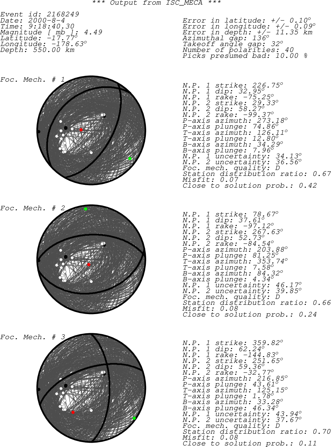 sta chan net loc pol a/m azi dist author irsta BKM ??? IR C 268.49 12.51 NOU BKM NOUC ??? IR U 250.63 14.80 NOU NOUC ARMA ??? IR d 239.49 29.82 NEIC ARMA CTAO ??? IR d 260.34 33.26 NEIC CTAO CNB ??? IR d 232.06 33.34 NEIC CNB TOO ??? IR d 230.55 37.09 NEIC TOO STKA ??? IR d 240.95 38.51 NEIC STKA YOMI ??? IR D 285.89 42.74 DJA YOMI MENI ??? IR C 285.98 42.93 DJA MENI ASPA ??? IR d 254.12 44.62 NEIC ASPA KAKA ??? IR d 268.93 47.37 NEIC KAKA FORT ??? IR d 244.50 49.87 NEIC FORT FITZ ??? IR d 260.49 52.84 NEIC FITZ BUNI ??? IR C 275.64 61.34 DJA BUNI NINI ??? IR C 274.62 61.64 DJA NINI TANI ??? IR C 275.55 62.30 DJA TANI SPA ??? IR d 180.00 72.33 NEIC SPA VRC ??? IR d 38.96 79.21 NEIC VRC OSR ??? IR d 34.02 81.34 NEIC OSR VFP ??? IR d 36.84 81.40 NEIC VFP CROR ??? IR d 37.32 81.48 NEIC CROR ERK ??? IR d 35.67 81.50 NEIC ERK GL2 ??? IR d 36.58 82.14 NEIC GL2 WPW ??? IR d 35.68 82.17 NEIC WPW GSM ??? IR d 35.17 82.33 NEIC GSM JBO ??? IR d 37.39 82.42 NEIC JBO RMW ??? IR d 34.95 82.48 NEIC RMW NAC ??? IR d 35.94 82.59 NEIC NAC HTW ??? IR d 34.69 82.70 NEIC HTW ELK ??? IR c 43.23 82.71 NEIC ELK EBG ??? IR d 35.90 82.84 NEIC EBG JCW ??? IR d 34.31 82.85 NEIC JCW CMW ??? IR d 34.05 82.89 NEIC CMW MRPI ??? IR D 273.96 82.92 DJA MRPI PRW ??? IR d 36.83 82.94 NEIC PRW MDW ??? IR d 36.47 83.12 NEIC MDW WAH2 ??? IR d 36.43 83.31 NEIC WAH2 LNOR ??? IR d 37.67 83.55 NEIC LNOR WTV ??? IR d 35.50 83.64 NEIC WTV OD2 ??? IR d 36.23 84.16 NEIC OD2 LARI ??? IR D 274.81 84.41 DJA LARI SNAA ??? IR + 178.67 90.73 AWI SNAA VNA2 ??? IR c 177.13 91.32 NEIC VNA2 VNA1 ??? IR c 176.80 91.55 NEIC VNA1 sta - Station code (FDSN) chan - channel code net - Network code (FDSN) loc - Location code (FDSN) pol - Polarity a/m - Automatic or manual pick azi - Event to station azimuth (in degrees) dist - Event to station distance (in degrees) author - Author of the polarity irsta - International registry station code