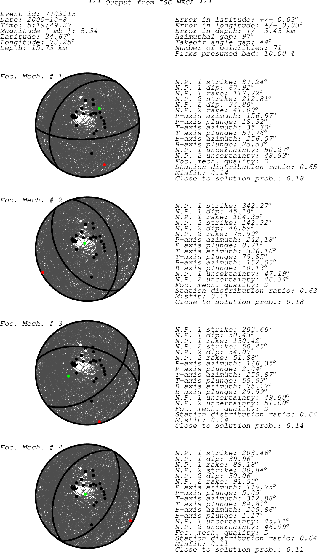 sta chan net loc pol a/m azi dist author irsta KSH ??? IR U 23.43 5.30 BJI KSH AAK ??? IR d 6.60 8.02 NNC AAK AAK ??? IR d 6.60 8.02 NEIC AAK AAK S?Z IR C 6.60 8.02 MOS AAK AJM S?? IR C 171.26 8.25 NDI AJM KK31 ??? IR d 346.61 8.69 NNC KK31 KK31 ??? IR d 346.61 8.69 NEIC KK31 KURK ??? IR c 12.09 16.51 NNC KURK KURK ??? IR c 12.09 16.51 NEIC KURK VOSK ??? IR c 355.56 18.12 NNC VOSK VOSK S?Z IR C 355.56 18.12 MOS VOSK BVA0 ??? IR c 354.54 18.46 NNC BVA0 BVA0 ??? IR c 354.54 18.46 NEIC BVA0 BVA0 S?Z IR C 354.54 18.46 MOS BVA0 AGT S?? IR D 119.67 19.00 NDI AGT CHKZ ??? IR d 355.21 19.09 NNC CHKZ AKTK ??? IR d 329.41 19.28 NEIC AKTK AKTO ??? IR d 329.41 19.28 NNC AKTO NVS S?Z IR C 16.00 21.34 MOS NVS ARU S?Z IR C 339.71 23.97 MOS ARU GOF S?Z IR C 303.34 25.27 MOS GOF KIV S?Z IR C 300.69 25.28 MOS KIV ZAK S?Z IR C 45.10 26.89 MOS ZAK SOKR S?Z IR C 341.61 27.18 MOS SOKR GYA ??? IR C 96.75 29.81 BJI GYA OBN S?Z IR C 320.32 32.52 MOS OBN WHN ??? IR C 85.10 34.70 BJI WHN TIA ??? IR C 74.57 35.55 BJI TIA MLR ??? IR C 301.41 37.28 BUC MLR MTUR ??? IR D 300.99 37.91 BUC MTUR VOIR ??? IR C 301.33 37.91 BUC VOIR DRGR ??? IR D 303.53 39.52 BUC DRGR APA S?Z IR D 337.52 40.02 MOS APA BOLS ??? IR + 298.96 40.20 BEO BOLS BARS ??? IR + 297.42 40.40 BEO BARS DIVS ??? IR + 299.56 41.59 BEO DIVS NVSS ??? IR + 298.72 41.86 BEO NVSS RHK1 ??? IR d 302.71 42.76 NEIC RHK1 VLA S?Z IR C 61.07 45.59 MOS VLA CLL ??? IR c 310.49 45.77 NEIC CLL CLL ??? IR + 310.49 45.77 CLL CLL CLL S?Z IR C 310.49 45.77 MOS CLL KBA HHZ IR d 304.58 45.91 VIE KBA WTTA HHZ IR c 305.04 47.04 VIE WTTA SQTA EHZ IR c 305.03 47.33 VIE SQTA SQTA ??? IR c 305.03 47.33 NEIC SQTA MOTA EHZ IR c 305.21 47.39 VIE MOTA WTSB ??? IR d 311.83 49.56 DBN WTSB PGF ??? IR C 299.30 49.75 LDG PGF HINF ??? IR C 306.44 50.15 LDG HINF HAU ??? IR C 306.77 50.45 LDG HAU SBF ??? IR C 301.31 50.56 LDG SBF LPG ??? IR C 303.51 50.67 LDG LPG LPL ??? IR C 303.54 50.68 LDG LPL MBDF ??? IR C 302.54 50.83 LDG MBDF CABF ??? IR C 305.04 50.90 LDG CABF FRF ??? IR C 301.10 51.19 LDG FRF BAIF ??? IR C 309.70 51.47 LDG BAIF LOR ??? IR C 306.27 52.25 LDG LOR VIVF ??? IR C 303.14 52.25 LDG VIVF SMF ??? IR C 305.51 52.40 LDG SMF SSF ??? IR C 306.09 52.53 LDG SSF AVF ??? IR C 305.79 52.69 LDG AVF LASF ??? IR C 302.37 53.01 LDG LASF BGF ??? IR C 305.60 53.09 LDG BGF TCF ??? IR C 305.41 53.58 LDG TCF CAF ??? IR C 303.81 54.03 LDG CAF RJF ??? IR C 304.39 54.30 LDG RJF MTLF ??? IR C 301.90 54.36 LDG MTLF MA2 M?Z IR C 37.52 54.68 MOS MA2 LFF ??? IR C 304.14 54.93 LDG LFF GRR ??? IR C 308.56 55.07 LDG GRR EPF ??? IR C 302.02 55.76 LDG EPF ETSF ??? IR C 302.12 56.43 LDG ETSF ROSF ??? IR C 309.02 56.64 LDG ROSF QUIF ??? IR C 308.51 56.69 LDG QUIF SJPF ??? IR C 302.55 56.83 LDG SJPF DAG ??? IR D 344.07 56.99 DNK DAG DAG S?Z IR D 344.07 56.99 MOS DAG BILL B?Z IR C 25.86 59.45 MOS BILL SFJD ??? IR C 339.69 70.11 DNK SFJD SFJD S?Z IR C 339.69 70.11 MOS SFJD COLA B?Z IR C 16.84 75.71 MOS COLA KIC ??? IR C 268.44 76.54 LIC KIC TIC ??? IR C 268.84 76.61 LIC TIC LIC ??? IR C 268.49 76.85 LIC LIC MUN ??? IR C 143.64 77.63 AUST MUN WB2 ??? IR C 123.10 79.47 AUST WB2 sta - Station code (FDSN) chan - channel code net - Network code (FDSN) loc - Location code (FDSN) pol - Polarity a/m - Automatic or manual pick azi - Event to station azimuth (in degrees) dist - Event to station distance (in degrees) author - Author of the polarity irsta - International registry station code