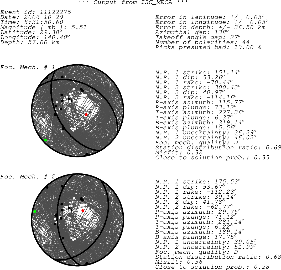 sta chan net loc pol a/m azi dist author irsta CBIJ ??? IR D 144.87 2.77 JMA CBIJ JHHJ ??? IR D 149.71 3.16 JMA JHHJ JKO ??? IR C 347.69 4.91 JMA JKO JWZ ??? IR C 317.15 5.76 JMA JWZ VLA ??? IR c 335.78 15.32 NEIC VLA YSS S?Z IR C 5.33 17.64 MOS YSS SNY ??? IR C 316.85 18.44 BJI SNY QZH ??? IR U 262.35 19.89 BJI QZH TIA ??? IR D 295.26 20.69 BJI TIA HKC ??? IR C 259.46 24.60 HKC HKC CGP ??? IR c 218.44 25.51 MAN CGP GYA ??? IR D 272.64 29.89 BJI GYA LZH ??? IR D 291.93 31.34 BJI LZH LZH S?Z IR D 291.93 31.34 MOS LZH LZH ??? IR d 291.93 31.34 NEIC LZH ULN S?Z IR C 315.05 31.59 MOS ULN CD2 ??? IR C 282.05 31.64 BJI CD2 YAK B?Z IR D 350.84 33.41 MOS YAK SEY S?Z IR C 9.66 34.45 MOS SEY SEY ??? IR c 9.66 34.45 NEIC SEY CHG ??? IR d 263.93 39.10 BKK CHG BILL B?Z IR C 14.31 41.62 MOS BILL KAKA ??? IR D 191.53 42.54 AUST KAKA FITZ ??? IR D 198.64 49.30 AUST FITZ WRAB S?Z IR D 187.51 49.37 MOS WRAB WB2 ??? IR D 187.50 49.38 AUST WB2 AAA M?Z IR D 303.69 51.84 MOS AAA AAK S?Z IR C 303.27 53.68 MOS AAK JBP B?Z IR D 278.50 54.02 NDI JBP NGP B?Z IR D 276.59 55.55 NDI NGP COLA B?Z IR D 29.25 56.08 MOS COLA SVE S?Z IR D 321.55 60.46 MOS SVE POO S?? IR C 276.00 61.07 NDI POO ARU S?Z IR D 321.33 61.66 MOS ARU APA S?Z IR D 336.91 69.34 MOS APA OBN S?Z IR C 324.48 73.76 MOS OBN KIV S?Z IR D 312.29 75.34 MOS KIV ANTO ??? IR D 312.44 83.77 BUC ANTO TIRR ??? IR D 318.10 83.88 BUC TIRR VRI ??? IR D 319.95 84.01 BUC VRI VRI S?Z IR D 319.95 84.01 MOS VRI PLOR ??? IR D 319.97 84.07 BUC PLOR PLOR S?Z IR D 319.97 84.07 MOS PLOR MLR ??? IR D 319.98 84.68 BUC MLR VOIR ??? IR C 320.32 85.21 BUC VOIR VOIR ??? IR c 320.32 85.21 NEIC VOIR DRGR ??? IR C 322.40 85.64 BUC DRGR MORC ??? IR D 326.93 86.30 BUC MORC PSZ ??? IR D 324.50 86.38 BUC PSZ GZR ??? IR C 321.28 86.49 BUC GZR GZR ??? IR c 321.28 86.49 NEIC GZR BZS ??? IR C 321.98 86.98 BUC BZS VRAC ??? IR C 327.00 87.07 BUC VRAC CLL S?Z IR D 330.05 87.29 MOS CLL CLL ??? IR d 330.05 87.29 NEIC CLL CLL ??Z IR - 330.05 87.29 CLL CLL VTS ??? IR D 318.92 87.99 BUC VTS VTS ??? IR d 318.92 87.99 NEIC VTS PKSM ??? IR C 323.79 88.16 BUC PKSM PKSM S?Z IR C 323.79 88.16 MOS PKSM MOA HHZ IR c 327.04 89.19 VIE MOA WTTA HHZ IR c 327.92 90.85 VIE WTTA WTTA S?Z IR C 327.92 90.85 MOS WTTA MOTA EHZ IR d 328.24 91.03 VIE MOTA MOTA S?Z IR D 328.24 91.03 MOS MOTA SQTA EHZ IR d 328.10 91.08 VIE SQTA SQTA S?Z IR D 328.10 91.08 MOS SQTA sta - Station code (FDSN) chan - channel code net - Network code (FDSN) loc - Location code (FDSN) pol - Polarity a/m - Automatic or manual pick azi - Event to station azimuth (in degrees) dist - Event to station distance (in degrees) author - Author of the polarity irsta - International registry station code
