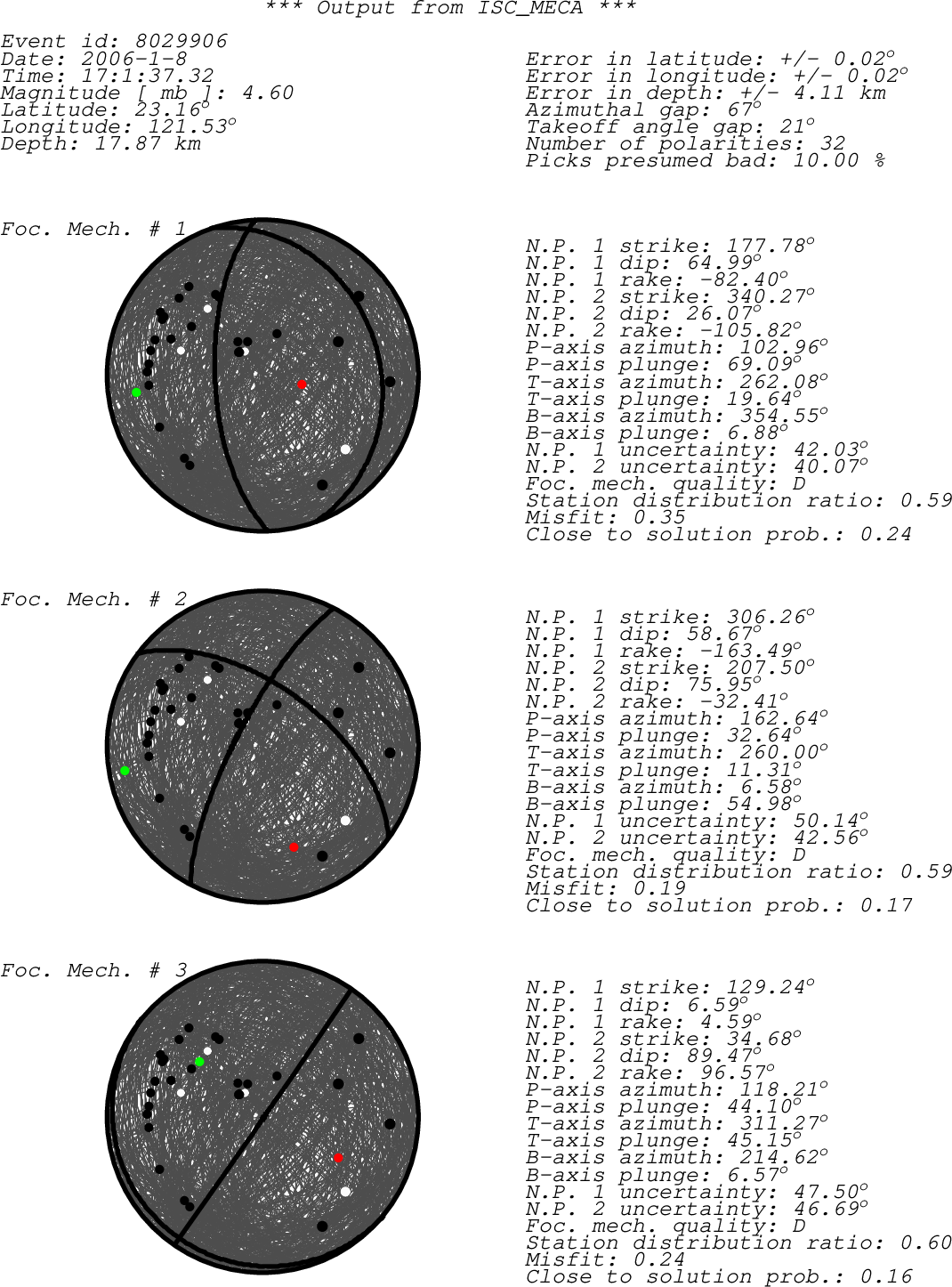 sta chan net loc pol a/m azi dist author irsta CHKT ??? IR C 246.13 0.16 TAP CHKT TWF1 ??? IR D 311.72 0.28 TAP TWF1 EHY ??? IR C 331.26 0.39 TAP EHY ELDTW ??? IR C 273.07 0.47 TAP ELDTW TWG ??? IR C 230.74 0.54 TAP TWG YUS ??? IR C 301.64 0.62 TAP YUS ESL ??? IR C 352.57 0.65 TAP ESL STYT ??? IR C 270.02 0.71 TAP STYT ALS ??? IR C 297.62 0.75 TAP ALS ECL ??? IR C 223.10 0.77 TAP ECL WTP ??? IR C 275.70 0.84 TAP WTP SGST ??? IR C 264.76 0.87 TAP SGST CHN4 ??? IR C 282.39 0.88 TAP CHN4 CHN5 ??? IR C 299.11 0.89 TAP CHN5 CHN1 ??? IR C 271.46 0.92 TAP CHN1 SSD ??? IR C 243.32 0.92 TAP SSD TYC ??? IR C 320.33 0.96 TAP TYC EAST ??? IR C 218.90 1.00 TAP EAST WGK ??? IR C 300.59 1.03 TAP WGK WNT ??? IR C 312.77 1.05 TAP WNT CHY ??? IR C 288.35 1.06 TAP CHY TWM1 ??? IR C 251.72 1.07 TAP TWM1 CHN3 ??? IR C 265.50 1.07 TAP CHN3 WSF ??? IR C 291.74 1.29 TAP WSF TWQ1 ??? IR C 329.82 1.36 TAP TWQ1 NSY ??? IR C 330.82 1.43 TAP NSY QZH ??N IR C 304.02 3.21 BJI QZH WHN ??? IR D 320.47 9.75 BJI WHN GYA ??? IR D 286.69 13.89 BJI GYA SNY ??? IR C 4.79 18.69 BJI SNY BILL S?Z IR C 19.49 52.53 MOS BILL ARU S?Z IR C 323.41 56.11 MOS ARU APA S?Z IR C 335.58 68.11 MOS APA CFR ??? IR C 313.37 76.23 BUC CFR VRI ??? IR C 314.37 76.94 BUC VRI BURAR ??? IR C 316.43 77.31 BUC BURAR MLR ??? IR C 314.20 77.58 BUC MLR CLL ??Z IR - 323.16 83.05 CLL CLL CLL S?Z IR D 323.16 83.05 MOS CLL sta - Station code (FDSN) chan - channel code net - Network code (FDSN) loc - Location code (FDSN) pol - Polarity a/m - Automatic or manual pick azi - Event to station azimuth (in degrees) dist - Event to station distance (in degrees) author - Author of the polarity irsta - International registry station code