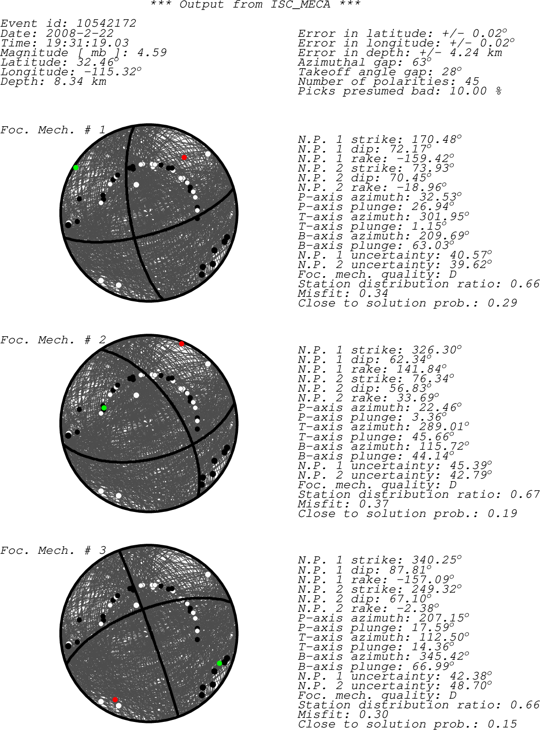 sta chan net loc pol a/m azi dist author irsta CPBX S?Z IR D 156.22 0.04 ECX CPBX CPBX ??? IR d 156.22 0.04 NEIC CPBX SGL H?Z IR C 299.65 0.39 ECX SGL ERPC ??? IR c 315.07 0.41 NEIC ERPC COA H?Z IR D 22.62 0.44 ECX COA COK H?Z IR C 319.13 0.52 ECX COK YUH H?Z IR C 290.79 0.54 ECX YUH 112A BHZ IR d 82.66 0.63 IRIS 112A YMD E?Z IR C 81.34 0.67 ECX YMD DVTC ??? IR c 287.32 0.69 NEIC DVTC CRR H?Z IR C 308.42 0.69 ECX CRR GLA BHZ IR d 35.09 0.73 IRIS GLA GLA ??? IR d 35.09 0.73 NEIC GLA RDX S?Z IR D 225.01 0.74 ECX RDX CBX B?Z IR C 263.16 1.14 ECX CBX BAR ??? IR c 281.43 1.16 NEIC BAR Y12C BHZ IR c 27.28 1.45 IRIS Y12C PFO ??? IR c 320.68 1.50 NEIC PFO 109C BHZ IR c 286.49 1.56 IRIS 109C Z13A BHZ IR c 61.72 1.59 IRIS Z13A BELC BHZ IR c 340.03 1.64 IRIS BELC IRM BHZ IR d 5.00 1.70 IRIS IRM Y13A BHZ IR d 42.42 1.85 IRIS Y13A MURC BHZ IR d 306.46 1.94 IRIS MURC PDMCI BHZ IR d 27.92 2.09 IRIS PDMCI Z14A BHZ IR d 65.05 2.19 IRIS Z14A GMRC BHZ IR d 353.21 2.34 IRIS GMRC NEE2 BHZ IR c 14.13 2.38 IRIS NEE2 Y14A BHZ IR d 52.14 2.44 IRIS Y14A X13A BHZ IR d 29.94 2.47 IRIS X13A HEC BHZ IR c 340.66 2.51 IRIS HEC LDFC ??? IR d 3.85 2.62 NEIC LDFC 115A BHZ IR c 83.86 2.62 IRIS 115A BFSC BHZ IR c 312.92 2.64 IRIS BFSC CIS BHZ IR c 290.76 2.77 IRIS CIS SCI2 BHZ IR d 281.74 2.77 IRIS SCI2 Z15A BHZ IR d 71.84 2.79 IRIS Z15A X14A BHZ IR d 44.72 2.86 IRIS X14A W12A BHZ IR d 7.46 2.86 IRIS W12A W13A BHZ IR c 24.05 2.90 IRIS W13A Y15A BHZ IR c 58.42 2.92 IRIS Y15A TUQ BHZ IR d 350.64 3.01 IRIS TUQ 116A BHZ IR d 87.07 3.06 IRIS 116A GSC BHZ IR c 336.93 3.09 IRIS GSC X15A BHZ IR c 51.04 3.28 IRIS X15A EDW2 BHZ IR d 318.09 3.29 IRIS EDW2 216A BHZ IR c 96.84 3.31 IRIS 216A sta - Station code (FDSN) chan - channel code net - Network code (FDSN) loc - Location code (FDSN) pol - Polarity a/m - Automatic or manual pick azi - Event to station azimuth (in degrees) dist - Event to station distance (in degrees) author - Author of the polarity irsta - International registry station code