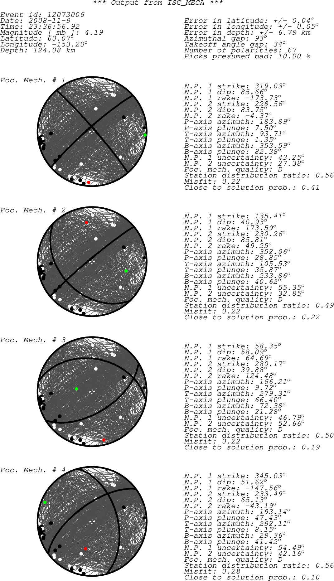 sta chan net loc pol a/m azi dist author irsta AUL BHZ AV -- - a 189.84 0.70 ISC AUL SPBG BHZ AV -- - a 18.59 1.26 ISC SPBG SVW2 BHZ AT -- - a 312.12 1.58 ISC SVW2 FIB BHZ AK -- + a 52.34 1.85 ISC FIB SWD BHZ AK -- + a 87.37 1.88 ISC SEW KAKN BHZ AV -- - a 209.06 2.02 ISC KAKN KABU BHZ AV -- - a 211.57 2.10 ISC KABU OHAK BHZ AT -- - a 180.92 2.86 ISC OHAK PPLA BHZ AK -- - a 9.30 2.88 ISC PPLA SAW BHZ AK -- + a 51.68 2.95 ISC SML TRF BHZ AK -- - a 20.95 3.66 ISC TRF CHUM BHZ AK -- - a 5.87 3.85 ISC CHUM DHY BHZ AK -- - a 40.23 4.10 ISC DHY BPAW BHZ AK -- + a 13.49 4.17 ISC BPAW MCK BHZ AK -- - a 26.93 4.19 ISC MCK GOAT BHZ XZ -- + a 79.43 4.25 ISC GOAT RAG BHZ AK -- - a 82.07 4.26 ISC RAGM BMR BHZ AK -- + a 74.34 4.34 ISC BMRM NICH BHZ XZ -- + a 83.96 4.62 ISC NICHA PAX BHZ AK -- - a 48.53 4.71 ISC PAX BERG BHZ XZ -- + a 82.00 4.75 ISC BERG VRDI BHZ XZ -- + a 72.21 4.94 ISC VRDI MCAR BHZ XZ -- + a 70.86 5.17 ISC MCARA KULT BHZ XZ -- + a 83.53 5.24 ISC KULT BARK BHZ XZ -- + a 81.80 5.35 ISC BARK PTPK BHZ XZ -- - a 73.42 5.40 ISC PTPK COLA BHZ IU 10 - a 24.90 5.42 ISC COLA COLA BHZ IU 00 - a 24.90 5.42 ISC COLA COLA HHZ IU 10 - a 24.90 5.42 ISC COLA MDM BHZ AK -- + a 22.99 5.42 ISC MDM ISLE BHZ XZ -- + a 79.67 5.42 ISC ISLE BAGL BHZ XZ -- - a 80.86 5.55 ISC BAGL DOT BHZ AK -- - a 46.38 5.62 ISC DOT GRNC BHZ XZ -- + a 78.40 5.71 ISC GRNC BARN BHZ XZ -- + a 75.14 5.78 ISC BARN TABL BHZ XZ -- + a 81.26 6.02 ISC TABL LOGN BHZ XZ -- + a 77.61 6.08 ISC LOGN PNL BHZ AK -- - a 87.35 6.96 ISC PNL COLD BHZ AK -- + a 9.22 7.31 ISC COLD SKAG BHZ AT -- + a 86.12 9.04 ISC SKAG SIT BHZ AT -- - a 100.11 9.81 ISC SIT YKR1 SHZ CN -- - a 65.89 18.36 ISC YKR1 YKR1 SHZ CN -- - a 65.89 18.36 ISC YKR1 YKR2 SHZ CN -- + a 65.88 18.38 ISC YKR2 YKR2 SHZ CN -- + a 65.88 18.38 ISC YKR2 YKR3 SHZ CN -- + a 65.86 18.41 ISC YKR3 YKR3 SHZ CN -- + a 65.86 18.41 ISC YKR3 YKR4 SHZ CN -- - a 65.85 18.43 ISC YKR4 YKR4 SHZ CN -- - a 65.85 18.43 ISC YKR4 YKR5 SHZ CN -- - a 65.84 18.45 ISC YKR5 YKR5 SHZ CN -- - a 65.84 18.45 ISC YKR5 YKR7 SHZ CN -- + a 65.81 18.49 ISC YKR7 YKR7 SHZ CN -- + a 65.81 18.49 ISC YKR7 YKB0 SHZ CN -- + a 65.45 18.50 ISC YKB0 YKB9 SHZ CN -- + a 65.52 18.50 ISC YKB9 YKB8 SHZ CN -- + a 65.59 18.50 ISC YKB8 YKB7 SHZ CN -- + a 65.66 18.51 ISC YKB7 YKB6 SHZ CN -- + a 65.73 18.51 ISC YKB6 YKR8 SHZ CN -- + a 65.80 18.52 ISC YKB5 YKR8 SHZ CN -- + a 65.80 18.52 ISC YKB5 YKB4 SHZ CN -- + a 65.87 18.52 ISC YKB4 YKB3 SHZ CN -- + a 65.94 18.52 ISC YKB3 YKB2 SHZ CN -- + a 66.02 18.53 ISC YKB2 YKB1 SHZ CN -- + a 66.08 18.53 ISC YKB1 YKR9 SHZ CN -- + a 65.79 18.54 ISC YKR9 YKR9 SHZ CN -- + a 65.79 18.54 ISC YKR9 YKW1 HHZ CN -- + a 65.81 18.57 ISC YKC sta - Station code (FDSN) chan - channel code net - Network code (FDSN) loc - Location code (FDSN) pol - Polarity a/m - Automatic or manual pick azi - Event to station azimuth (in degrees) dist - Event to station distance (in degrees) author - Author of the polarity irsta - International registry station code