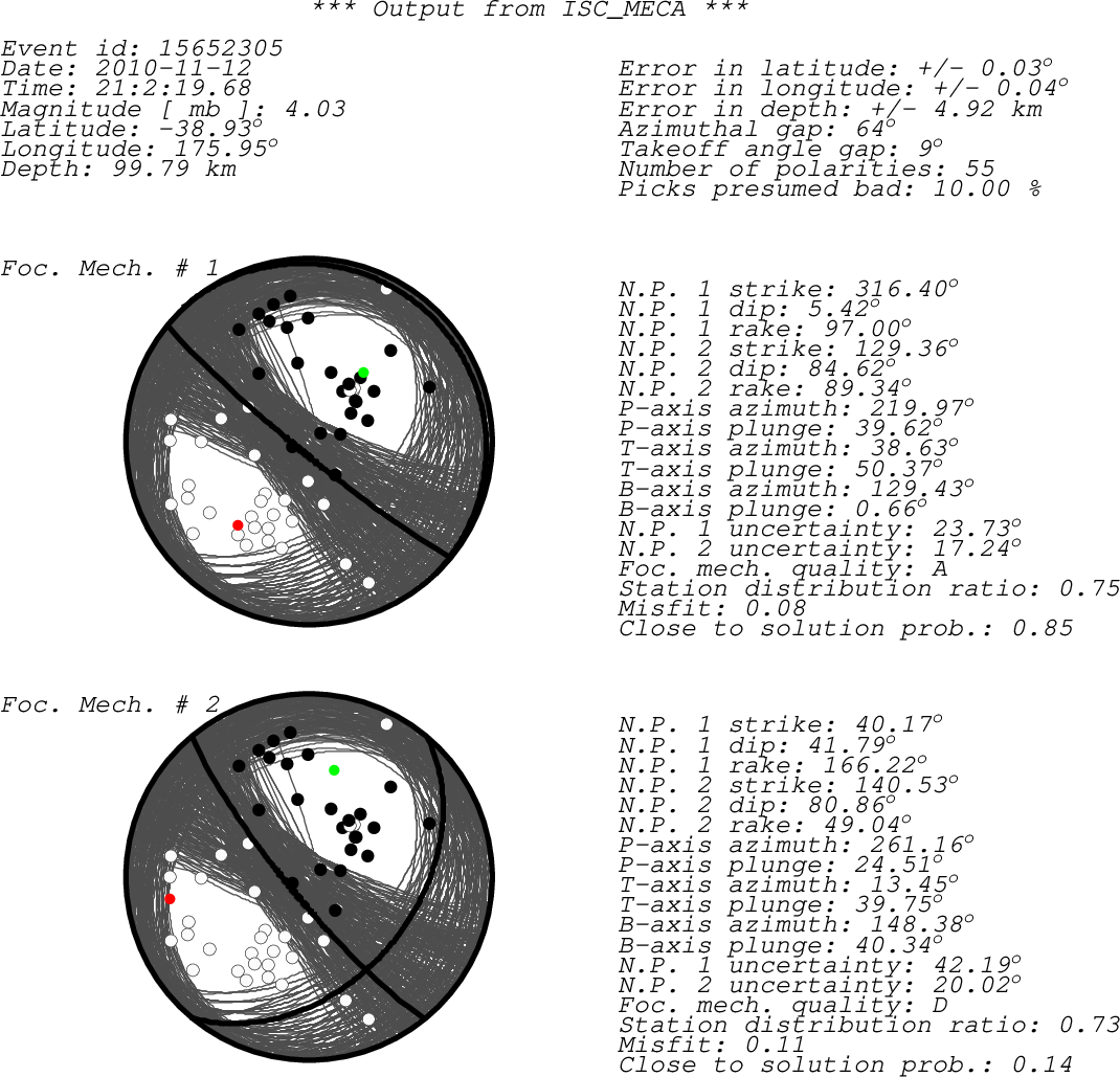 sta chan net loc pol a/m azi dist author irsta BKZ HHZ NZ 10 - a 119.57 0.48 ISC BKZ NMHZ ??? IR d 104.45 0.69 WEL NMHZ RAHZ ??? IR d 89.54 0.88 WEL RAHZ PNHZ ??? IR c 169.09 1.00 WEL PNHZ WAZ ??? IR c 222.00 1.11 WEL WAZ URZ HHZ NZ 10 - a 53.97 1.13 ISC URZ TSZ ??? IR c 179.70 1.13 WEL TSZ WPHZ ??? IR c 161.76 1.20 WEL WPHZ PXZ ??? IR c 147.70 1.31 WEL PXZ LREZ ??? IR c 245.74 1.32 WEL LREZ PRHZ ??? IR c 158.69 1.44 WEL PRHZ PRGZ ??? IR d 90.37 1.50 WEL PRGZ MHGZ ??? IR d 98.97 1.54 WEL MHGZ ANWZ ??? IR c 165.42 1.58 WEL ANWZ BFZ HHZ NZ 10 + a 172.74 1.76 ISC BFZ HAZ ??? IR d 51.42 1.85 WEL HAZ PUZ ??? IR d 65.38 2.00 WEL PUZ ETAZ ??? IR d 337.33 2.13 WEL ETAZ KHZ ??? IR d 207.02 3.94 WEL KHZ sta - Station code (FDSN) chan - channel code net - Network code (FDSN) loc - Location code (FDSN) pol - Polarity a/m - Automatic or manual pick azi - Event to station azimuth (in degrees) dist - Event to station distance (in degrees) author - Author of the polarity irsta - International registry station code