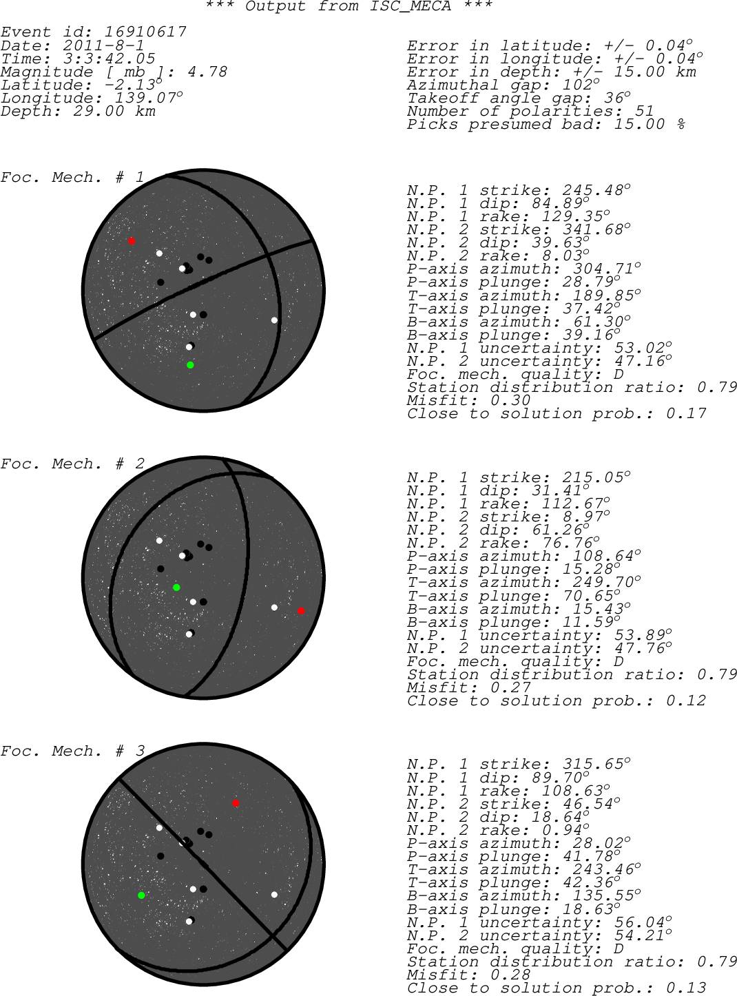 sta chan net loc pol a/m azi dist author irsta GENI BHZ GE -- - a 112.89 1.19 ISC GENI GENI SHZ GE -- - a 112.89 1.19 ISC GENI WR5 BHZ AU -- - a 194.05 18.29 ISC WR5 WRAB S?Z IR C 194.30 18.29 MOS WRAB RCP ??? IR d 310.30 21.18 MAN RCP AS16 SHZ AU -- + a 192.71 21.95 ISC AS16 AS06 SHZ AU -- + a 192.60 21.95 ISC AS06 AS15 SHZ AU -- + a 192.75 21.96 ISC AS15 AS05 SHZ AU -- + a 192.66 21.96 ISC AS05 AS17 SHZ AU -- + a 192.54 21.97 ISC AS17 AS14 SHZ AU -- + a 192.74 21.97 ISC AS14 AS07 SHZ AU -- + a 192.59 21.97 ISC AS07 AS01 SHZ AU -- + a 192.64 21.98 ISC AS01 AS04 SHZ AU -- + a 192.69 21.98 ISC AS04 AS13 SHZ AU -- + a 192.78 21.98 ISC AS13 AS31 BHZ AU -- + a 192.75 21.99 ISC AS31 AS08 SHZ AU -- + a 192.61 21.99 ISC AS08 AS02 SHZ AU -- + a 192.66 21.99 ISC AS02 AS18 SHZ AU -- + a 192.55 21.99 ISC AS18 AS09 SHZ AU -- + a 192.64 22.01 ISC AS09 AS19 SHZ AU -- + a 192.59 22.01 ISC AS19 KUM BHZ MY -- + a 281.00 39.09 ISC KULM YAK S?Z IR C 355.11 64.39 MOS YAK KZA HHZ KN -- + a 315.48 72.33 ISC KZA KZA BHZ KN -- + a 315.48 72.33 ISC KZA BILL S?Z IR C 10.38 72.53 MOS BILL UCH BHZ KN -- - a 315.43 72.90 ISC UCH UCH HHZ KN -- - a 315.43 72.90 ISC UCH AAK S?Z IR C 315.83 73.05 MOS AAK KUR11 BHZ KZ -- - a 324.67 73.37 ISC KUR11 KUR12 BHZ KZ -- - a 324.67 73.39 ISC KUR12 KUR13 BHZ KZ -- - a 324.67 73.41 ISC KUR13 KUR14 BHZ KZ -- + a 324.66 73.43 ISC KUR14 AML BHZ KN -- + a 315.13 73.44 ISC AML AML HHZ KN -- - a 315.13 73.44 ISC AML KUR15 BHZ KZ -- + a 324.65 73.45 ISC KUR15 KUR08 BHZ KZ -- + a 324.59 73.45 ISC KUR08 KURK BHZ II 10 + a 324.76 73.45 ISC KURK KUR21 BHZ KZ -- - a 324.65 73.47 ISC KUR21 KUR03 BHZ KZ -- - a 324.71 73.48 ISC KUR03 KUR02 BHZ KZ -- - a 324.73 73.48 ISC KUR02 KUR01 BHZ KZ -- - a 324.75 73.49 ISC KUR01 EKS2 BHZ KN -- - a 315.67 73.55 ISC EKS2 KUR20 BHZ KZ -- - a 324.63 73.56 ISC KUR20 BVAR BHZ KZ -- + a 325.03 79.05 ISC BVAR BRVK S?Z IR C 325.04 79.12 MOS BRVK MAW BHZ AU -- - a 202.03 82.80 ISC MAW ABKAR BHZ KZ -- + a 319.73 84.52 ISC ABKAR ARU B?Z IR C 326.70 86.51 MOS ARU QSPA BHZ IU 10 + a 179.99 87.81 ISC QSPA QSPA BHZ IU 70 + a 179.99 87.81 ISC QSPA QSPA BHZ IU 80 + a 179.99 87.81 ISC QSPA KIV S?Z IR C 313.80 96.08 MOS KIV sta - Station code (FDSN) chan - channel code net - Network code (FDSN) loc - Location code (FDSN) pol - Polarity a/m - Automatic or manual pick azi - Event to station azimuth (in degrees) dist - Event to station distance (in degrees) author - Author of the polarity irsta - International registry station code