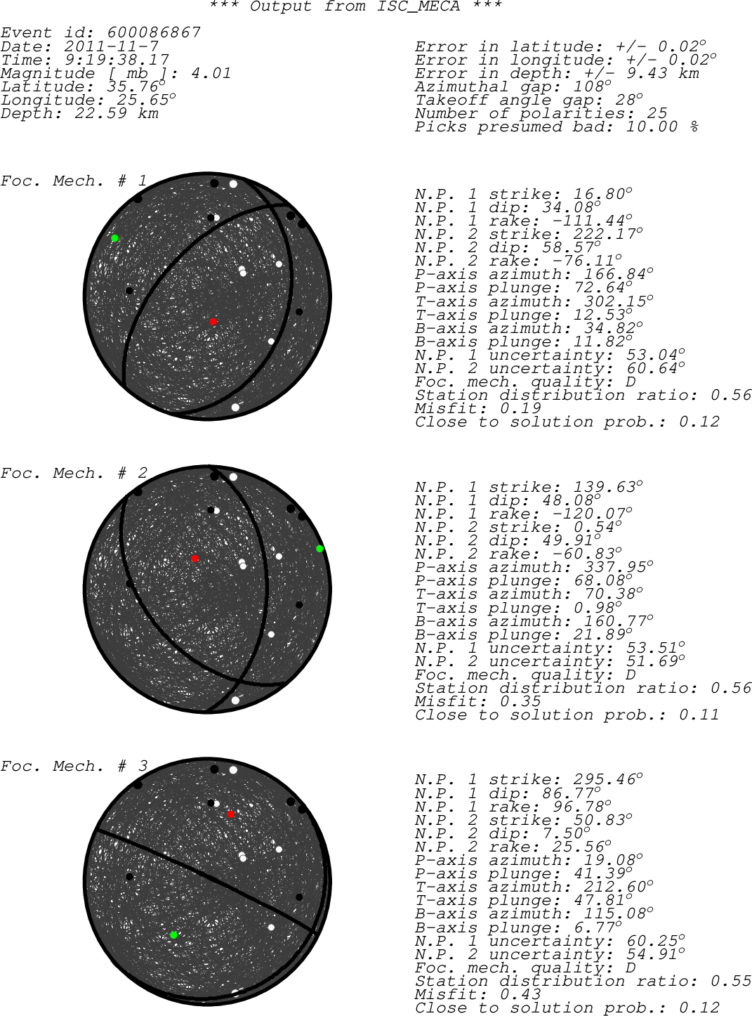 sta chan net loc pol a/m azi dist author irsta NPS HHZ HL -- + a 183.69 0.50 ISC NPS LAST HHZ HL -- - a 193.13 0.62 ISC LAST SANT HHZ HL -- - a 345.73 0.62 ISC SANT SANT HHZ GE -- - a 345.73 0.62 ISC SANT IACM HHZ HL -- + a 226.07 0.66 ISC IACM IDI HHZ HL -- + a 232.74 0.78 ISC IDI ZKR SHZ GE -- + a 144.29 0.80 ISC ZKR ZKR HHZ HL -- + a 144.29 0.80 ISC ZKR ZKR HHZ GE -- + a 144.29 0.80 ISC ZKR KARP SHZ GE -- + a 99.55 1.25 ISC KARP ANKY HHZ HL -- + a 273.76 1.91 ISC ANKY CHOS HHZ HT -- - a 6.86 2.64 ISC CHOS DALY BHZ KO -- - a 65.73 2.64 ISC DALY SIGR HHZ HT -- + a 2.66 3.44 ISC SIGR EIL SHZ GE -- - a 125.19 9.91 ISC EIL KUR19 BHZ KZ -- - a 51.52 40.35 ISC KUR19 KUR17 BHZ KZ -- - a 51.54 40.39 ISC KUR17 KUR16 BHZ KZ -- - a 51.54 40.41 ISC KUR16 KUR08 BHZ KZ -- - a 51.64 40.42 ISC KUR08 KUR07 BHZ KZ -- - a 51.61 40.42 ISC KUR07 KUR05 BHZ KZ -- - a 51.52 40.44 ISC KUR05 KUR04 BHZ KZ -- - a 51.49 40.44 ISC KUR04 KUR03 BHZ KZ -- - a 51.46 40.45 ISC KUR03 KUR13 BHZ KZ -- - a 51.57 40.49 ISC KUR13 MKAR BHZ KZ -- - a 57.11 43.11 ISC MKAR sta - Station code (FDSN) chan - channel code net - Network code (FDSN) loc - Location code (FDSN) pol - Polarity a/m - Automatic or manual pick azi - Event to station azimuth (in degrees) dist - Event to station distance (in degrees) author - Author of the polarity irsta - International registry station code