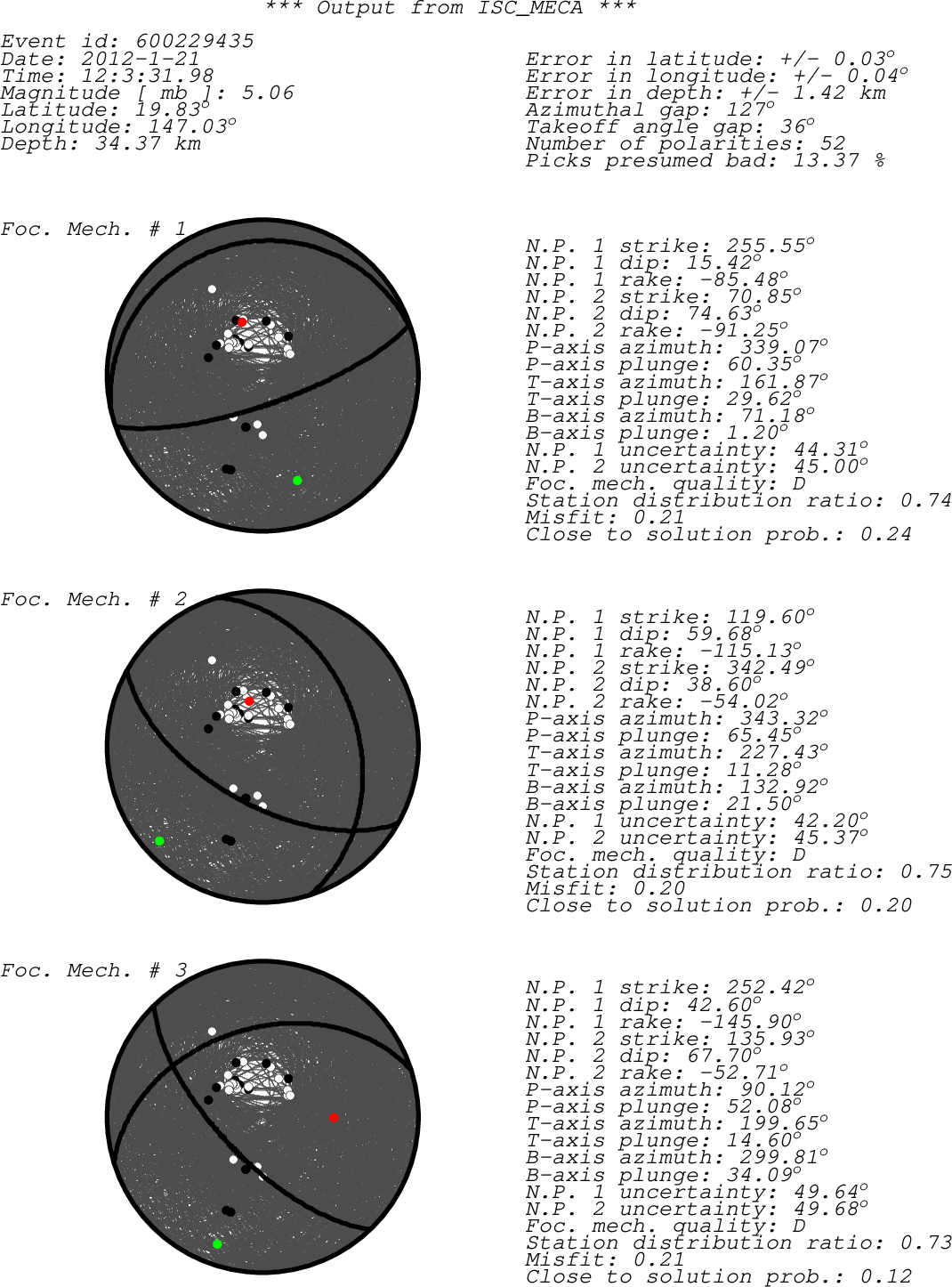 sta chan net loc pol a/m azi dist author irsta SARN BHZ MI -- + a 201.03 3.33 ISC SARN GUMO HHZ IU 10 + a 198.75 6.54 ISC GUMO GUMO BHZ IU 10 + a 198.75 6.54 ISC GUMO OGS BHZ PS -- - a 329.28 8.44 ISC OGS VLA B?Z IR C 334.60 26.48 MOS VLA PMG B?Z IR D 179.73 29.06 MOS PMG KLR B?Z IR D 340.86 31.79 MOS KLR GYA ??? IR c 287.84 37.58 BJI GYA LZH ??? IR c 302.48 41.08 BJI LZH WR0 BHZ AU -- + a 197.91 41.40 ISC WR0 WRAB BHZ II 00 + a 198.17 41.42 ISC WRAB ULN B?Z IR D 320.35 42.68 MOS ULN SEY B?Z IR C 3.57 43.22 MOS SEY GTA ??? IR d 306.31 44.87 BJI GTA MBWA BHZ IU 10 - a 214.73 48.71 ISC MBWA BILL B?Z IR D 9.36 49.70 MOS BILL STKA BHZ AU -- - a 185.89 51.68 ISC STKA KDAK B?Z IR C 33.42 57.73 MOS KDAK MKAR BHZ KZ -- - a 313.28 58.59 ISC MKAR NVS S?Z IR C 322.72 58.96 MOS NVS KUR11 BHZ KZ -- - a 317.49 61.23 ISC KUR11 KUR12 BHZ KZ -- - a 317.50 61.25 ISC KUR12 KUR13 BHZ KZ -- - a 317.50 61.27 ISC KUR13 KURK B?Z IR D 317.62 61.28 MOS KURK KUR15 BHZ KZ -- - a 317.51 61.31 ISC KUR15 KUR01 BHZ KZ -- - a 317.62 61.31 ISC KUR01 KUR02 BHZ KZ -- - a 317.60 61.32 ISC KUR02 KUR05 BHZ KZ -- - a 317.53 61.33 ISC KUR05 KUR08 BHZ KZ -- - a 317.44 61.34 ISC KUR08 KUR09 BHZ KZ -- - a 317.42 61.34 ISC KUR09 KUR10 BHZ KZ -- - a 317.39 61.34 ISC KUR10 KUR17 BHZ KZ -- - a 317.52 61.37 ISC KUR17 KUR18 BHZ KZ -- - a 317.52 61.39 ISC KUR18 KUR19 BHZ KZ -- - a 317.52 61.41 ISC KUR19 KUR20 BHZ KZ -- - a 317.53 61.43 ISC KUR20 USP HHZ KN -- - a 309.23 64.10 ISC USP USP BHZ KN -- - a 309.23 64.10 ISC USP AAK B?Z IR D 308.54 64.14 MOS AAK BVAR BHZ KZ -- - a 320.11 66.41 ISC BVAR BRVK B?Z IR D 320.15 66.47 MOS BRVK INK BHZ CN -- - a 23.25 67.84 ISC INK SVE B?Z IR C 324.69 71.68 MOS SVE ARU B?Z IR D 324.47 72.88 MOS ARU ABKAR BHZ KZ -- - a 316.93 73.37 ISC ABKAR AKTO BHZ KZ -- - a 318.39 74.36 ISC AKTO OMAK BHZ UW -- - a 42.92 77.79 ISC B08A BMO BHZ US 00 + a 45.92 80.16 ISC BMO RYN HHZ NN -- - a 52.20 81.23 ISC RYN JOF BHZ HE -- - a 335.48 83.52 ISC JOF DUG BHZ US 00 - a 49.20 84.86 ISC DUG OBN S?Z IR D 327.29 85.01 MOS OBN VSU B?Z IR C 332.99 87.86 MOS VSU ANMO B?Z IR C 51.99 91.58 MOS ANMO sta - Station code (FDSN) chan - channel code net - Network code (FDSN) loc - Location code (FDSN) pol - Polarity a/m - Automatic or manual pick azi - Event to station azimuth (in degrees) dist - Event to station distance (in degrees) author - Author of the polarity irsta - International registry station code