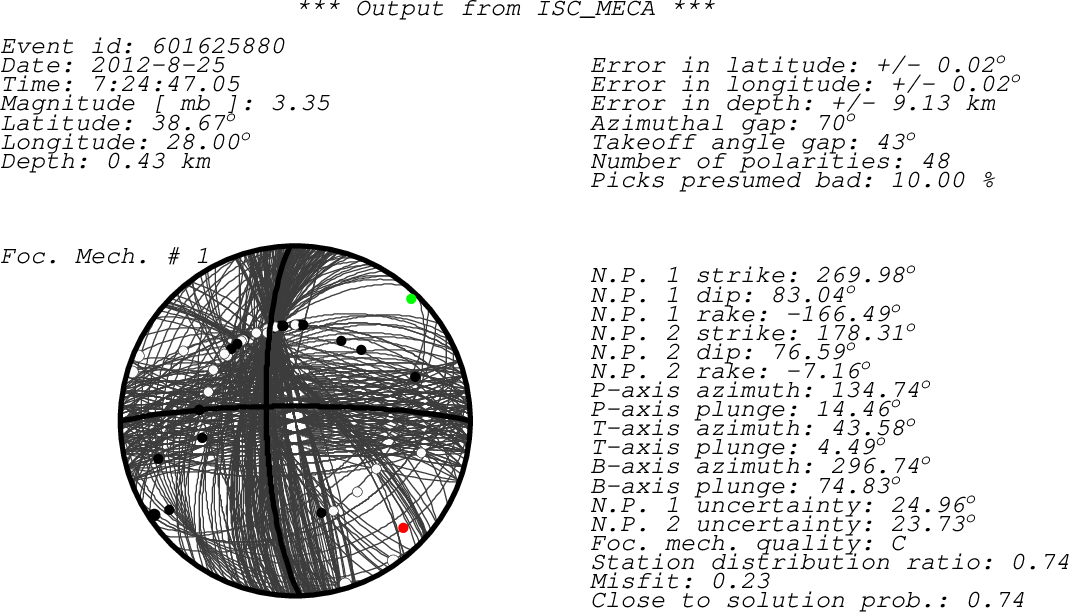 sta chan net loc pol a/m azi dist author irsta AKHS ??? IR d 324.88 0.25 AFAD AKHS MANT ??? IR d 112.47 0.47 AFAD MANT KULA BHZ KO -- - a 106.86 0.54 ISC KULA DEMI ??? IR c 56.49 0.67 AFAD DEMI STEP ??? IR d 342.83 0.73 AFAD STEP DURS ??? IR c 21.65 1.00 AFAD DURS AYDN ??? IR c 185.33 1.02 AFAD AYDN DGB ??? IR c 235.04 1.07 AFAD DGB URLA ??? IR c 254.53 1.14 AFAD URLA AYVA ??? IR d 302.26 1.20 AFAD AYVA KHAL ??? IR d 104.05 1.21 AFAD KHAL GDZ ??? IR c 69.85 1.23 AFAD GDZ DNZL ??? IR d 139.63 1.28 AFAD DNZL TAVA ??? IR d 148.81 1.41 AFAD TAVA BAYC ??? IR d 313.84 1.55 AFAD BAYC CHOS HHZ HT -- + a 259.97 1.55 ISC CHOS SIGR HHZ HT -- - a 288.47 1.75 ISC SIGR SIGR BHZ HT -- - a 288.47 1.75 ISC SIGR KRBG BHZ KO -- - a 342.71 1.80 ISC KRBG IGD ??? IR c 30.02 1.84 AFAD IGD GOLH ??? IR d 138.79 1.89 AFAD GOLH BRDR ??? IR d 120.34 1.90 AFAD BRDR DALY BHZ KO -- + a 164.16 1.93 ISC DALY CAVI BHZ KO -- + a 42.46 2.09 ISC CAVI ISP ??? IR C 112.38 2.16 BUC ISP FETY BHZ KO -- - a 156.73 2.21 ISC FETY GADA BHZ KO -- - a 313.63 2.22 ISC GADA ENEZ BHZ KO -- - a 325.93 2.50 ISC ENEZ APE ??? IR D 231.38 2.53 BUC APE ALN HHZ HT -- - a 326.53 2.68 ISC ALN RDO HHZ HL -- + a 323.27 3.11 ISC RDO ANTO ??? IR C 70.72 3.91 BUC ANTO IDI ??? IR C 217.31 4.20 BUC IDI VTS ??? IR C 318.56 5.35 BUC VTS TIRR ??? IR C 2.95 5.79 BUC TIRR TLB ??? IR D 0.30 5.91 BUC TLB HARR ??? IR C 359.54 6.01 BUC HARR CFR ??? IR D 0.86 6.50 BUC CFR ISR ??? IR C 350.90 6.53 BUC ISR TLCR ??? IR C 5.08 6.54 BUC TLCR MLR ??? IR D 348.03 6.98 BUC MLR VOIR ??? IR D 342.97 7.11 BUC VOIR PLOR ??? IR C 352.50 7.24 BUC PLOR VRI ??? IR C 352.95 7.25 BUC VRI HERR ??? IR C 327.88 7.47 BUC HERR DOPR ??? IR C 346.00 7.54 BUC DOPR OZUR ??? IR D 348.28 7.59 BUC OZUR PDG ??? IR D 302.17 7.64 BUC PDG MDVR ??? IR D 324.42 7.70 BUC MDVR TESR ??? IR C 353.20 7.90 BUC TESR BZS ??? IR C 327.72 8.40 BUC BZS BZS HHZ RO -- - a 327.72 8.40 ISC BZS TIP ??? IR C 276.80 8.78 BUC TIP TIP BHZ MN -- + a 276.81 8.78 ISC TIP DRGR ??? IR D 336.11 8.99 BUC DRGR BURAR ??? IR C 348.10 9.16 BUC BURAR sta - Station code (FDSN) chan - channel code net - Network code (FDSN) loc - Location code (FDSN) pol - Polarity a/m - Automatic or manual pick azi - Event to station azimuth (in degrees) dist - Event to station distance (in degrees) author - Author of the polarity irsta - International registry station code