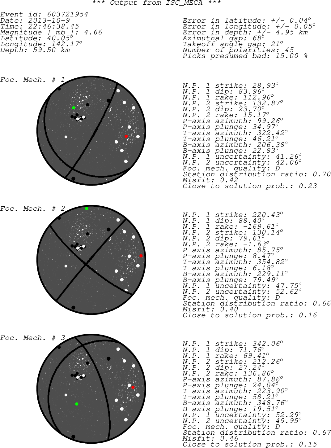 sta chan net loc pol a/m azi dist author irsta JKEN ??? IR D 294.17 0.39 JMA JKEN MIYJ ??? IR C 209.93 0.54 JMA MIYJ JANG ??? IR D 303.14 0.60 JMA JANG JKZ ??? IR D 264.64 0.65 JMA JKZ JOM ??? IR D 229.95 0.89 JMA JOM JTM ??? IR D 311.60 1.12 JMA JTM JAH ??? IR D 277.29 1.19 JMA JAH JMK ??? IR D 214.18 1.32 JMA JMK JRG ??? IR D 241.70 1.35 JMA JRG ERM B?Z IR C 20.48 2.10 MOS ERM TEY S?Z IR C 322.31 6.46 MOS TEY TIXI B?Z IR C 352.18 32.38 MOS TIXI GYA ??? IR d 256.24 32.41 BJI GYA KURK B?Z IR C 305.84 44.59 MOS KURK ARU B?Z IR C 317.32 54.52 MOS ARU ABKAR BHZ KZ -- + a 308.86 56.48 ISC ABKAR KIV BHZ II 10 - a 310.44 69.39 ISC KIV KIV BHZ II 00 - a 310.44 69.39 ISC KIV AKH ??? IR c 307.88 70.42 BUC AKH SORM S?Z IR C 320.50 74.44 MOS SORM SORM ??? IR c 320.50 74.44 BUC SORM TLCR S?Z IR C 318.05 76.24 MOS TLCR TLCR ??? IR c 318.05 76.24 BUC TLCR BURAR S?Z IR C 321.63 76.32 MOS BURAR BURAR ??? IR c 321.63 76.32 BUC BURAR BIZ ??? IR c 320.70 76.37 BUC BIZ TESR ??? IR c 320.12 76.40 BUC TESR CFR S?Z IR D 318.39 76.59 MOS CFR CFR ??? IR d 318.39 76.59 BUC CFR VRI S?Z IR D 319.61 76.82 MOS VRI VRI ??? IR d 319.61 76.82 BUC VRI BISRR ??? IR d 319.38 77.05 BUC BISRR TRPA ??? IR c 323.33 77.20 BUC TRPA DOPR ??? IR c 320.36 77.41 BUC DOPR MLR S?Z IR D 319.73 77.47 MOS MLR MLR ??? IR d 319.73 77.47 BUC MLR ICOR ??? IR c 317.78 77.50 BUC ICOR CJR S?Z IR D 321.80 77.73 MOS CJR CJR ??? IR d 321.80 77.73 BUC CJR VOIR S?Z IR C 320.15 77.95 MOS VOIR VOIR ??? IR c 320.15 77.95 BUC VOIR DRGR S?Z IR D 322.31 78.10 MOS DRGR DRGR ??? IR d 322.31 78.10 BUC DRGR MORC S?Z IR D 326.97 78.16 MOS MORC MORC ??? IR d 326.97 78.16 BUC MORC VRAC S?Z IR C 327.15 78.92 MOS VRAC VRAC ??? IR c 327.15 78.92 BUC VRAC MODW BHZ TH -- - a 330.30 79.28 ISC MODW ELND ??? IR d 317.93 79.33 BUC ELND BZS S?Z IR C 322.07 79.48 MOS BZS BZS ??? IR c 322.07 79.48 BUC BZS GRZ1 BHZ TH -- - a 330.28 79.57 ISC GRZ1 HERR ??? IR d 321.14 79.64 BUC HERR VTS S?Z IR C 319.14 80.90 MOS VTS VTS ??? IR c 319.14 80.90 BUC VTS EZN S?Z IR D 315.48 81.31 MOS EZN EZN ??? IR d 315.48 81.31 BUC EZN BFO B?Z IR C 330.99 82.96 MOS BFO APE S?Z IR D 314.01 83.72 MOS APE APE ??? IR d 314.01 83.72 BUC APE sta - Station code (FDSN) chan - channel code net - Network code (FDSN) loc - Location code (FDSN) pol - Polarity a/m - Automatic or manual pick azi - Event to station azimuth (in degrees) dist - Event to station distance (in degrees) author - Author of the polarity irsta - International registry station code