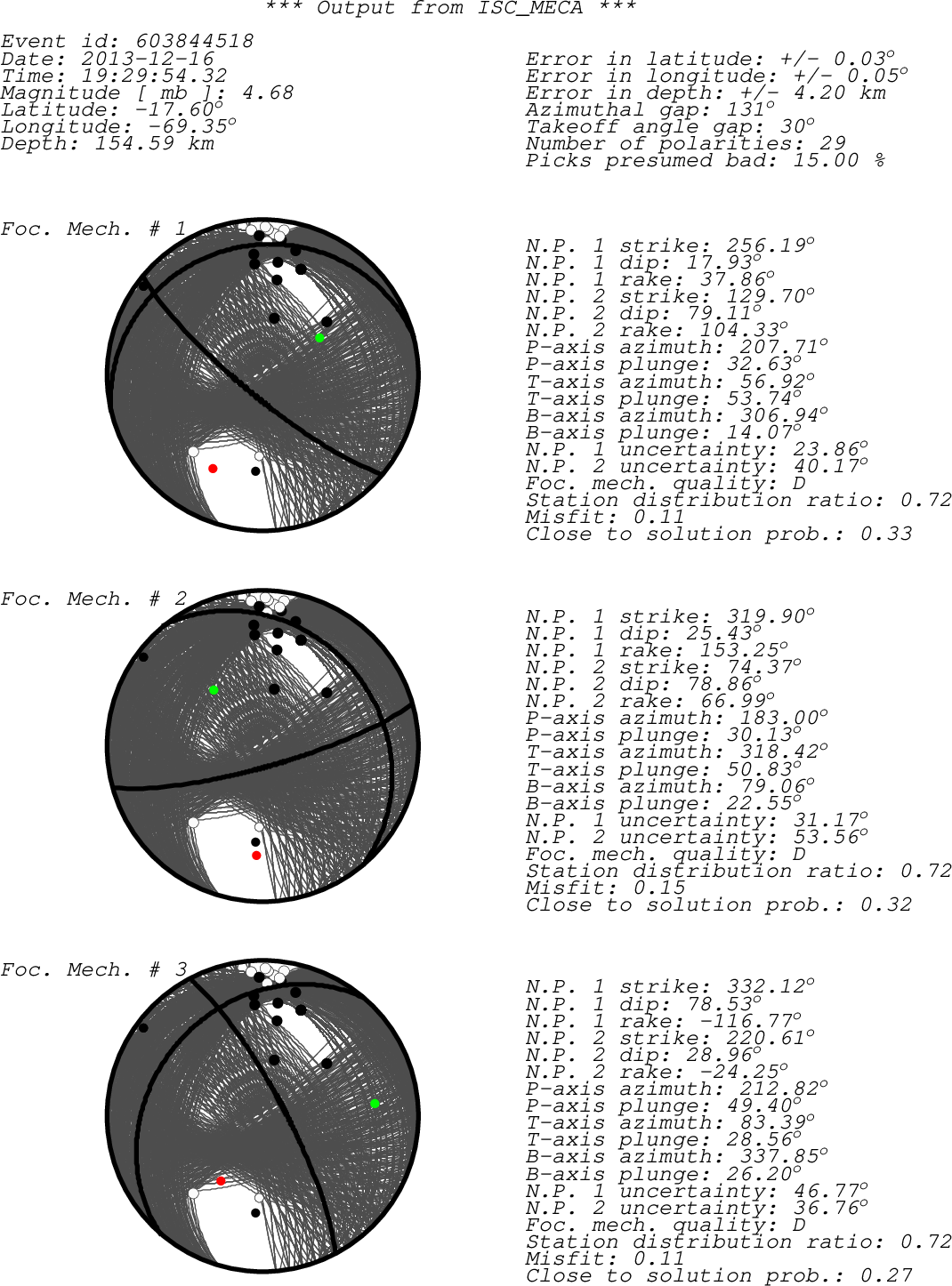 sta chan net loc pol a/m azi dist author irsta PB16 HHZ CX -- + a 191.51 0.75 ISC PB16 AP01 H?Z IR C 230.75 1.22 GUC AP01 MNMC H?Z IR C 188.63 1.54 GUC MNMC LPAZ BHZ GT 00 - a 42.01 1.75 ISC LPAZ GO01 B?Z IR C 175.89 2.06 GUC GO01 PSGC H?Z IR C 200.12 2.12 GUC PSGC PSGCX HHZ CX -- + a 200.12 2.12 ISC PSGCX PSGCX BHZ CX -- + a 200.12 2.12 ISC PSGCX PB11 H?Z IR C 187.61 2.17 GUC PB11 PB08 H?Z IR C 175.80 2.53 GUC PB08 TA01 H?Z IR C 194.76 3.05 GUC TA01 PB01 HHZ CX -- - a 182.13 3.43 ISC PB01 PB01 BHZ CX -- - a 182.13 3.43 ISC PB01 PB02 H?Z IR C 187.82 3.74 GUC PB02 PB07 HHZ CX -- - a 186.92 4.14 ISC PB07 PB09 BHZ CX -- + a 178.61 4.18 ISC PB09 PB03 BHZ CX -- - a 184.82 4.44 ISC PB03 PB03 HHZ CX -- - a 184.82 4.44 ISC PB03 LVC BHZ IU 00 - a 175.33 5.00 ISC LVC LVC HHZ IU 10 - a 175.33 5.00 ISC LVC PB06 HHZ CX -- - a 182.30 5.08 ISC PB06 PB06 BHZ CX -- - a 182.30 5.08 ISC PB06 PB05 HHZ CX -- - a 188.56 5.29 ISC PB05 PB15 HHZ CX -- - a 181.13 5.58 ISC PB15 NNA BHZ II 10 + a 306.60 9.14 ISC NNA NNA BHZ II 00 + a 306.60 9.14 ISC NNA GO06 BHZ C -- + a 184.38 21.98 ISC GO06 PLCA SHZ GT 10 - a 182.33 23.08 ISC PLCA PLCA BHZ GT 00 - a 182.33 23.08 ISC PLCA sta - Station code (FDSN) chan - channel code net - Network code (FDSN) loc - Location code (FDSN) pol - Polarity a/m - Automatic or manual pick azi - Event to station azimuth (in degrees) dist - Event to station distance (in degrees) author - Author of the polarity irsta - International registry station code