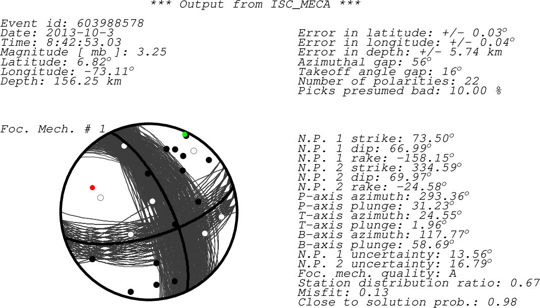 sta chan net loc pol a/m azi dist author irsta BARC S?Z IR D 197.35 0.24 RSNC BARC PAMC S?Z IR D 38.49 0.65 RSNC PAMC BRRC H?Z IR C 295.19 0.66 RSNC BRRC RUSC H?Z IR C 178.37 0.93 RSNC RUSC TAMC H?Z IR D 106.37 1.37 RSNC TAMC PTBC H?Z IR C 258.12 1.37 RSNC PTBC OCAC H?Z IR C 351.60 1.42 RSNC OCAC SPBC H?Z IR C 219.44 1.51 RSNC SPBC ZARC H?Z IR D 291.03 1.86 RSNC ZARC CHIC H?Z IR C 195.88 2.27 RSNC CHIC ROSC B?Z IR C 211.48 2.31 RSNC ROSC CVER S?Z IR C 202.79 2.48 RSNC CVER PTGC H?Z IR D 159.53 2.78 RSNC PTGC DBBC S?Z IR D 273.75 3.08 RSNC DBBC CODC H?Z IR C 353.91 3.11 RSNC CODC SDV BHZ IU 10 + a 50.01 3.19 ISC SDV SDV HHZ IU 10 + a 50.01 3.19 ISC SDV ARGC H?Z IR C 339.62 3.22 RSNC ARGC ORTC H?Z IR D 216.40 3.59 RSNC ORTC YOTC H?Z IR C 228.94 4.28 RSNC YOTC URI BHZ CM 01 + a 12.77 4.97 ISC URIC FLOC H?Z IR C 206.07 5.79 RSNC FLOC sta - Station code (FDSN) chan - channel code net - Network code (FDSN) loc - Location code (FDSN) pol - Polarity a/m - Automatic or manual pick azi - Event to station azimuth (in degrees) dist - Event to station distance (in degrees) author - Author of the polarity irsta - International registry station code