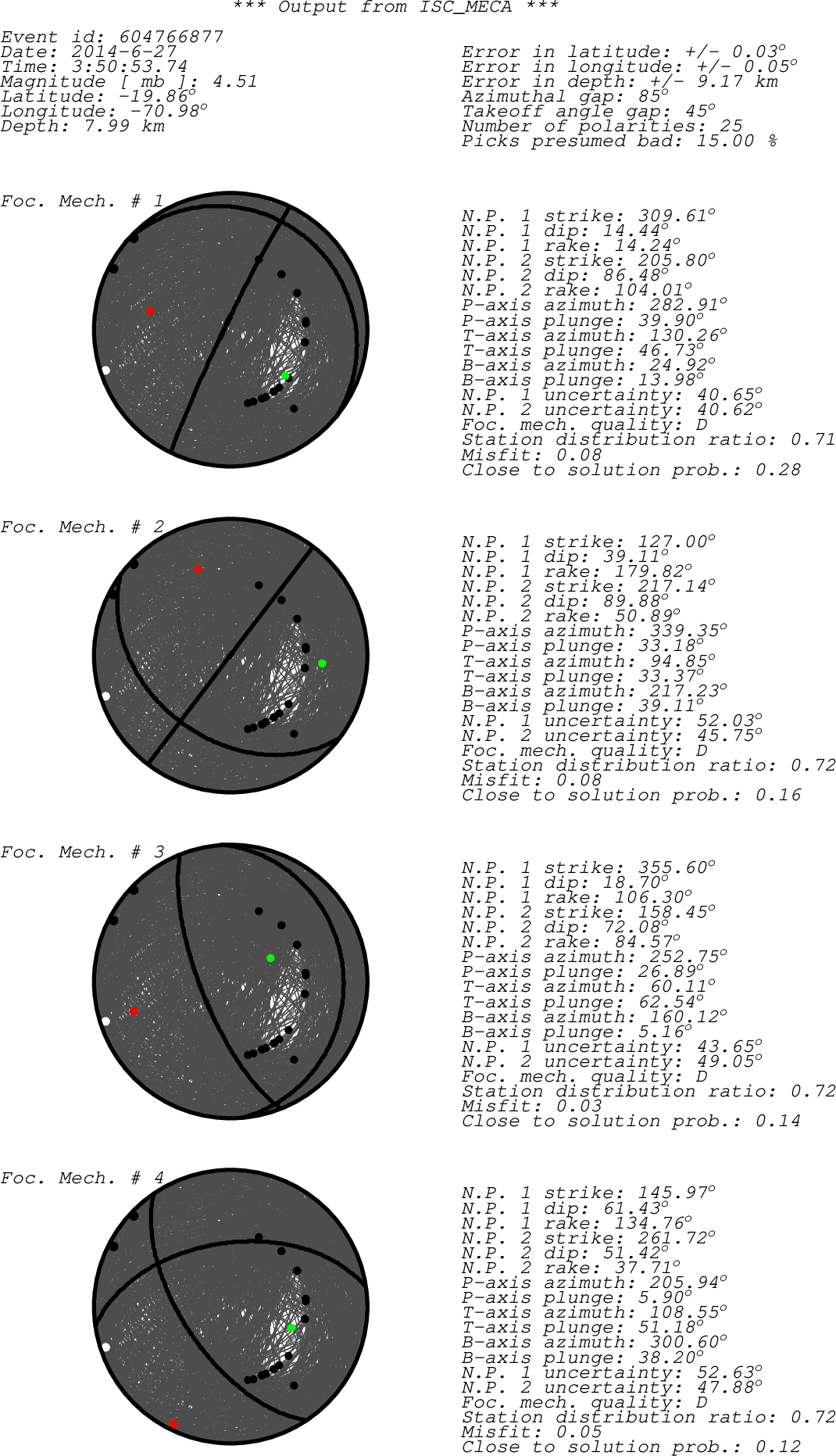 sta chan net loc pol a/m azi dist author irsta PSGC H?Z IR D 72.03 0.85 GUC PSGC PSGCX HHZ CX -- - a 72.03 0.85 ISC PSGCX TA02 H?Z IR C 117.25 0.89 GUC TA02 TA02 HHZ C1 -- + a 117.25 0.89 ISC TA02 TA01 H?Z IR C 133.28 1.02 GUC TA01 TA01 BHZ C1 -- + a 133.28 1.02 ISC TA01 PATCX HHZ CX -- + a 141.13 1.23 ISC PATCX PB11 H?Z IR C 85.62 1.25 GUC PB11 PB11 HHZ CX -- + a 85.62 1.25 ISC PB11 PB12 H?Z IR C 26.38 1.38 GUC PB12 MNMC H?Z IR C 61.08 1.49 GUC MNMC MNMCX BHZ CX -- + a 61.08 1.49 ISC MNMC MNMCX HHZ CX -- + a 61.08 1.49 ISC MNMC AP01 H?Z IR C 22.14 1.60 GUC AP01 GO01 B?Z IR C 83.77 1.69 GUC GO01 GO01 BHZ C -- + a 83.77 1.69 ISC GO01 PB08 H?Z IR C 99.52 1.74 GUC PB08 PB08 BHZ CX -- + a 99.52 1.74 ISC PB08 PB08 HHZ CX -- + a 99.52 1.74 ISC PB08 PB02 H?Z IR C 145.28 1.77 GUC PB02 PB01 H?Z IR C 130.35 1.82 GUC PB01 PB16 HHZ CX -- + a 42.69 2.06 ISC PB16 PB16 BHZ CX -- + a 42.69 2.06 ISC PB16 PB07 H?Z IR C 151.39 2.12 GUC PB07 PB03 H?Z IR C 152.49 2.46 GUC PB03 PB03 HHZ CX -- + a 152.49 2.46 ISC PB03 PB09 HHZ CX -- + a 140.18 2.52 ISC PB09 PB09 BHZ CX -- + a 140.18 2.52 ISC PB09 PB04 BHZ CX -- + a 162.71 2.58 ISC PB04 PB05 H?Z IR C 166.51 3.06 GUC PB05 PB06 HHZ CX -- + a 155.41 3.12 ISC PB06 PB06 BHZ CX -- + a 155.41 3.12 ISC PB06 LVC HHZ IU 10 + a 145.22 3.35 ISC LVC LVC BHZ IU 10 + a 145.22 3.35 ISC LVC LVC BHZ IU 00 + a 145.22 3.35 ISC LVC sta - Station code (FDSN) chan - channel code net - Network code (FDSN) loc - Location code (FDSN) pol - Polarity a/m - Automatic or manual pick azi - Event to station azimuth (in degrees) dist - Event to station distance (in degrees) author - Author of the polarity irsta - International registry station code
