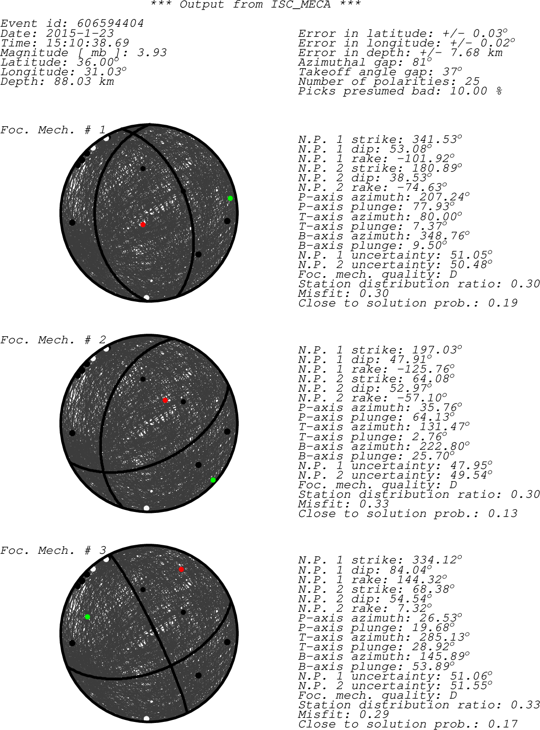 sta chan net loc pol a/m azi dist author irsta ELL BHZ KO -- + a 309.88 1.18 ISC ELL IKL BHZ KO -- + a 82.86 2.16 ISC IKL ARG HHZ HL -- + a 276.09 2.37 ISC ARG ARG SHZ HL -- + a 276.09 2.37 ISC ARG MDUB BHZ KO -- - a 1.60 4.47 ISC MDUB MMC7 BHZ IS -- + a 128.26 4.66 ISC MMC7 MMC1 BHZ IS -- + a 128.10 4.67 ISC MMC1 MMC6 BHZ IS -- + a 128.36 4.67 ISC MMC6 MMB4 BHZ IS -- + a 128.21 4.67 ISC MMB4 MMA4 BHZ IS -- + a 128.29 4.67 ISC MMA4 MMB2 BHZ IS -- + a 128.35 4.67 ISC MMB2 MMA0 BHZ IS -- + a 128.25 4.67 ISC MMA0 MMA0B BHZ IS -- - a 128.25 4.67 ISC MMA0B MMA2 BHZ IS -- + a 128.26 4.68 ISC MMA2 MMA3 BHZ IS -- + a 128.26 4.68 ISC MMA3 MMC3 BHZ IS -- + a 128.15 4.68 ISC MMC3 NATI SHZ IS -- + a 123.78 4.74 ISC NATI HMDT SHZ IS -- + a 133.78 5.27 ISC HMDT DSI SHZ IS -- - a 139.20 5.70 ISC DRGI KZIT SHZ IS -- - a 150.08 5.80 ISC KZIT AQBJ HHZ JS -- - a 150.49 7.11 ISC AQBJ EIL BHZ GE -- + a 151.32 7.12 ISC EIL EIL SHZ GE -- + a 151.32 7.12 ISC EIL MEF HHZ HE -- + a 352.04 24.61 ISC MEF MKAR BHZ KZ -- + a 57.79 39.30 ISC MKAR sta - Station code (FDSN) chan - channel code net - Network code (FDSN) loc - Location code (FDSN) pol - Polarity a/m - Automatic or manual pick azi - Event to station azimuth (in degrees) dist - Event to station distance (in degrees) author - Author of the polarity irsta - International registry station code