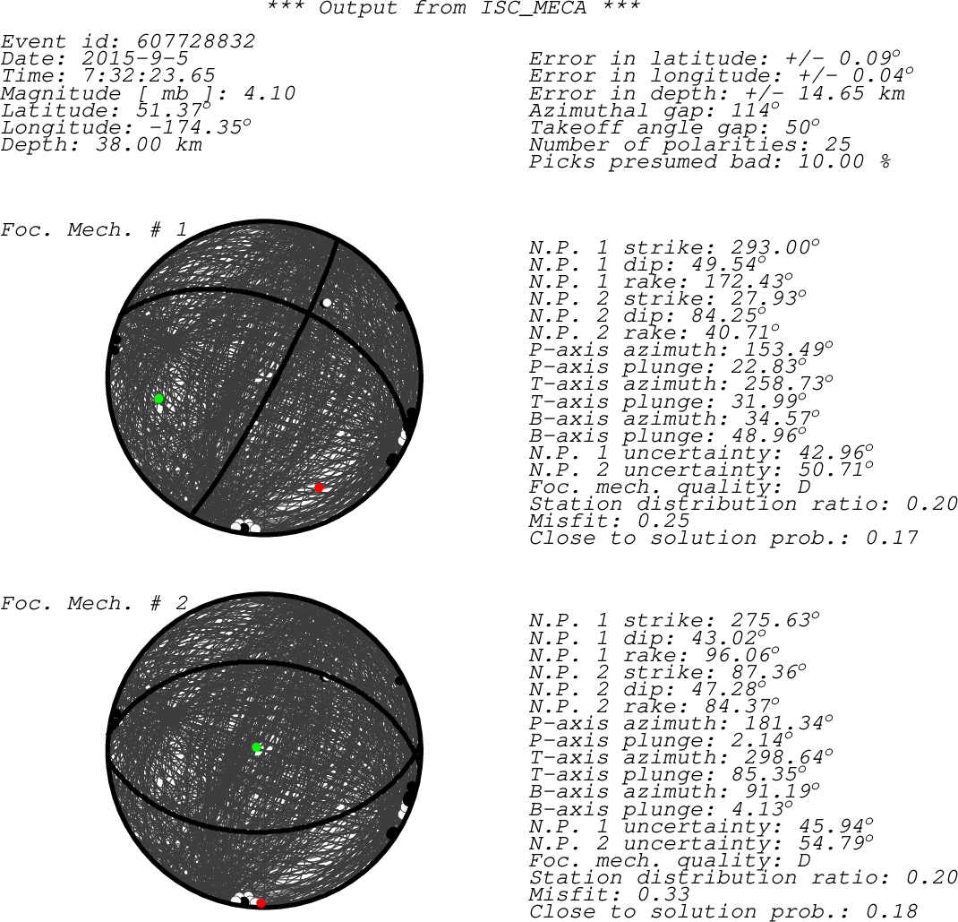 sta chan net loc pol a/m azi dist author irsta ATKA BHZ AK -- - a 6.39 0.84 ISC ATKA KOFP EHZ AV -- - a 9.63 0.92 ISC KOFP KOKL EHZ AV -- - a 5.40 0.96 ISC KOKL KOSE EHZ AV -- - a 10.63 0.99 ISC KOSE KOWE EHZ AV -- - a 3.40 1.00 ISC KOWE KONE EHZ AV -- + a 7.76 1.03 ISC KONE GSIG EHZ AV -- - a 302.71 1.16 ISC GSIG GSMY EHZ AV -- - a 302.99 1.26 ISC GSMY GSTD EHZ AV -- + a 302.21 1.31 ISC GSTD GSSP EHZ AV -- + a 303.15 1.35 ISC GSSP ETKA EHZ AV -- - a 291.75 1.38 ISC ETKA ADAG EHZ AV -- - a 294.36 1.53 ISC ADAG ADK BHZ IU 00 - a 290.32 1.54 ISC ADK ADK HHZ IU 10 - a 290.32 1.54 ISC ADK ADK BHZ IU 10 - a 290.32 1.54 ISC ADK KIRH EHZ AV -- + a 288.25 1.79 ISC KIRH KINC EHZ AV -- + a 289.03 1.82 ISC KINC KIKV EHZ AV -- + a 287.21 1.83 ISC KIKV KIMD EHZ AV -- + a 283.36 1.84 ISC KIMD KICM EHZ AV -- + a 288.28 1.86 ISC KICM TANO EHZ AV -- + a 284.53 2.41 ISC TANO NIKH BHZ AK -- + a 62.48 3.74 ISC NIKH LSNW SHZ AV -- + a 280.47 4.48 ISC LSNW SCRK BHZ AK -- - a 39.97 20.31 ISC SCRK EGAK BHZ US 00 + a 39.26 21.76 ISC EGAK sta - Station code (FDSN) chan - channel code net - Network code (FDSN) loc - Location code (FDSN) pol - Polarity a/m - Automatic or manual pick azi - Event to station azimuth (in degrees) dist - Event to station distance (in degrees) author - Author of the polarity irsta - International registry station code