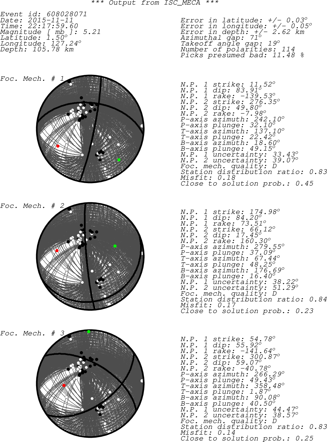 sta chan net loc pol a/m azi dist author irsta KCP ??? IR d 338.66 5.88 MAN KCP TOLI2 SHZ GE -- - a 266.69 6.47 ISC TOLI2 TOLI2 BHZ GE -- - a 266.69 6.47 ISC TOLI2 BNDI BHZ GE -- + a 156.03 6.54 ISC BNDI RCP ??? IR d 336.13 10.95 MAN RCP KDU BHZ AU -- - a 159.92 15.02 ISC KDU WRAB B?Z IR C 162.22 22.41 MOS WRAB PMG BHZ IU 00 - a 119.00 22.60 ISC PMG TPUB BHZ TW -- + a 344.01 22.60 ISC TPUB YHNB BHZ TW -- + a 346.64 23.73 ISC YHNB PSAD1 BHZ AU 00 - a 197.23 23.93 ISC PSAD1 PSAC1 BHZ AU 00 - a 197.22 24.02 ISC PSAC1 PSAB2 BHZ AU 00 - a 197.09 24.02 ISC PSAB2 PSAA2 BHZ AU 00 - a 197.11 24.03 ISC PSAA2 PSAA3 BHZ AU 00 - a 197.08 24.04 ISC PSAA3 PSAD2 BHZ AU 00 - a 196.82 24.05 ISC PSAD2 PSAB3 BHZ AU 00 - a 197.07 24.06 ISC PSAB3 PSAC3 BHZ AU 00 - a 197.11 24.09 ISC PSAC3 PSAD3 BHZ AU 00 - a 197.19 24.13 ISC PSAD3 XMI BHZ AU -- - a 240.57 24.51 ISC XMI QZH ??? IR c 340.97 24.76 BJI QZH QIS BHZ AU -- + a 151.71 25.04 ISC QIS AS15 SHZ AU -- + a 165.84 25.81 ISC AS15 AS16 SHZ AU -- + a 165.80 25.82 ISC AS16 AS13 SHZ AU -- + a 165.88 25.82 ISC AS13 AS14 SHZ AU -- + a 165.85 25.82 ISC AS14 AS06 SHZ AU -- + a 165.73 25.84 ISC AS06 AS31 BHZ AU -- + a 165.87 25.84 ISC AS31 AS12 SHZ AU -- + a 165.87 25.84 ISC ASAR AS01 SHZ AU -- + a 165.78 25.85 ISC AS01 AS03 SHZ AU -- + a 165.85 25.85 ISC AS03 AS07 SHZ AU -- + a 165.74 25.85 ISC AS07 AS02 SHZ AU -- + a 165.81 25.86 ISC AS02 AS17 SHZ AU -- + a 165.69 25.86 ISC AS17 AS10 SHZ AU -- + a 165.87 25.87 ISC AS10 AS09 SHZ AU -- + a 165.82 25.88 ISC AS09 AS19 SHZ AU -- + a 165.78 25.89 ISC AS19 LOEI BHZ TM -- + a 303.50 30.08 ISC LOEI SLV BHZ RM -- - a 312.57 30.10 ISC SLVN WHN ??? IR d 338.30 31.37 BJI WHN NJ2 ??? IR c 346.25 31.41 BJI NJ2 CMMT BHZ TM -- - a 303.64 32.64 ISC CMMT KMI ??? IR d 316.82 33.33 BJI KMI LCRK BHZ AU -- - a 162.65 33.44 ISC LCRK TJN S?Z IR C 0.17 34.71 MOS TJN TIA ??? IR d 345.94 35.79 BJI TIA STKA BHZ AU -- + a 158.91 35.87 ISC STKA MAJO B?Z IR C 14.99 36.32 MOS MAJO CMSA BHZ AU -- + a 153.47 37.23 ISC CMSA BJT HHZ IC 10 + a 346.63 39.64 ISC BJT LZH ??? IR d 330.43 40.68 BJI LZH MSHR B?Z IR C 4.40 41.05 MOS MSHR LSA BHZ IC 00 - a 312.78 44.32 ISC LSA GTA ??? IR d 329.85 45.27 BJI GTA KLR B?Z IR D 3.99 47.71 MOS KLR ULN B?Z IR D 342.17 49.39 MOS ULN MSVF S?Z IR D 113.31 53.54 MOS MSVF WMQ ??? IR c 325.69 54.84 BJI WMQ DGZ B?Z IR D 330.91 58.78 MOS DGZ MKAR BHZ KZ -- - a 325.78 59.67 ISC MKAR TARG BHZ KC -- - a 318.83 59.75 ISC TARG MAKZ BHZ IU 00 - a 325.65 59.86 ISC MAKZ ASAI BHZ KC -- - a 317.48 60.23 ISC ASAI MA2 S?Z IR C 13.47 60.74 MOS MA2 ULHL HHZ KN -- - a 318.73 61.02 ISC ULHL ULHL BHZ KN -- - a 318.73 61.02 ISC ULHL TKM2 BHZ KN -- - a 319.16 61.75 ISC TKM2 TKM2 HHZ KN -- - a 319.16 61.75 ISC TKM2 KBK BHZ KN -- - a 318.65 62.06 ISC KBK KBK HHZ KN -- - a 318.65 62.06 ISC KBK UCH BHZ KN -- - a 318.06 62.16 ISC UCH CHM BHZ KN -- - a 318.92 62.34 ISC CHMS AAK B?Z IR D 318.46 62.35 MOS AAK USP BHZ KN -- - a 319.10 62.63 ISC USP USP HHZ KN -- - a 319.10 62.63 ISC USP OHH BHZ KR -- - a 315.70 62.63 ISC OHH AML BHZ KN -- - a 317.66 62.67 ISC AML EKS2 HHZ KN -- - a 318.23 62.84 ISC EKS2 KUR11 BHZ KZ -- - a 327.83 63.79 ISC KUR11 GARM HHZ TJ -- - a 313.31 63.81 ISC GAR KUR12 BHZ KZ -- - a 327.82 63.81 ISC KUR12 KUR13 BHZ KZ -- - a 327.81 63.83 ISC KUR13 BTK BHZ KR -- - a 314.57 63.84 ISC BTK KUR14 BHZ KZ -- - a 327.81 63.85 ISC KUR14 KUR10 BHZ KZ -- - a 327.68 63.85 ISC KUR10 KUR09 BHZ KZ -- - a 327.70 63.86 ISC KUR09 KUR08 BHZ KZ -- - a 327.73 63.86 ISC KUR08 KUR15 BHZ KZ -- - a 327.80 63.87 ISC KUR15 KUR07 BHZ KZ -- - a 327.75 63.87 ISC KUR07 KURK B?Z IR D 327.91 63.89 MOS KURK KUR04 BHZ KZ -- - a 327.83 63.90 ISC KUR04 KUR16 BHZ KZ -- - a 327.78 63.91 ISC KUR16 KUR03 BHZ KZ -- - a 327.85 63.91 ISC KUR03 KUR01 BHZ KZ -- - a 327.89 63.92 ISC KUR01 KUR17 BHZ KZ -- - a 327.77 63.92 ISC KUR17 KUR18 BHZ KZ -- - a 327.76 63.94 ISC KUR18 KUR19 BHZ KZ -- - a 327.76 63.96 ISC KUR19 KUR20 BHZ KZ -- - a 327.75 63.98 ISC KUR20 KKAR BHZ KZ -- - a 317.58 65.21 ISC KKAR BRVK B?Z IR D 327.31 69.53 MOS BRVK TIXI S?Z IR C 0.55 70.06 MOS TIXI NRIK B?Z IR D 346.27 72.71 MOS NRIK ABKAR BHZ KZ -- - a 321.08 74.19 ISC ABKAR SVE B?Z IR C 328.69 76.12 MOS SVE ARU B?Z IR C 327.93 77.09 MOS ARU VNDA BHZ GT 00 - a 172.82 81.16 ISC VNDA RAYN BHZ II 00 - a 293.41 81.83 ISC RAYN KIRV B?Z IR C 328.90 82.39 MOS KIRV BELG B?Z IR C 322.55 82.48 MOS BELG KBZ S?Z IR D 313.59 84.88 MOS KBZ NEY S?Z IR C 313.10 84.98 MOS NEY MAZI BHZ KO -- + a 307.25 86.55 ISC MAZI OBN B?Z IR C 324.93 89.17 MOS OBN LVZ S?Z IR C 337.79 89.60 MOS LVZ AKBB S?Z IR C 320.86 93.94 MOS AKBB MBAR B?Z IR C 269.57 96.52 MOS MBAR sta - Station code (FDSN) chan - channel code net - Network code (FDSN) loc - Location code (FDSN) pol - Polarity a/m - Automatic or manual pick azi - Event to station azimuth (in degrees) dist - Event to station distance (in degrees) author - Author of the polarity irsta - International registry station code