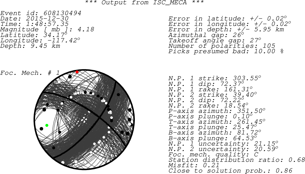 sta chan net loc pol a/m azi dist author irsta BFS BHZ CI -- - a 288.09 0.21 ISC BFSC BFS HHZ CI -- + a 288.09 0.21 ISC BFSC SVD BHZ CI -- + a 104.16 0.28 ISC SVD SVD HHZ CI -- + a 104.16 0.28 ISC SVD ADO HHZ CI -- - a 358.39 0.38 ISC ADO ADO BHZ CI -- - a 358.39 0.38 ISC ADO VTV HHZ CI -- - a 11.10 0.39 ISC VTV BBR HHZ CI -- + a 77.96 0.42 ISC BBRC CHF BHZ CI -- + a 287.71 0.53 ISC CHFC CHF HHZ CI -- + a 287.71 0.53 ISC CHFC MWC HHZ CI -- + a 275.46 0.53 ISC MWC MWC BHZ CI -- - a 275.46 0.53 ISC MWC MUR HHZ CI -- - a 161.80 0.60 ISC MURC MUR BHZ CI -- + a 161.80 0.60 ISC MURC DGR HHZ CI -- - a 146.69 0.63 ISC DGR PASC HHZ CI 00 + a 269.92 0.63 ISC PASC PASC BHZ CI 10 + a 269.92 0.63 ISC PASC PASC HHZ CI 10 + a 269.92 0.63 ISC PASC PASC BHZ CI 00 + a 269.92 0.63 ISC PASC USC HHZ CI -- + a 258.05 0.73 ISC USC USC BHZ CI -- + a 258.05 0.73 ISC USC DEC BHZ CI -- + a 276.19 0.76 ISC DECC DEC HHZ CI -- + a 276.19 0.76 ISC DECC RRX HHZ CI -- - a 26.50 0.78 ISC RRX RRX BHZ CI -- - a 26.50 0.78 ISC RRX HEC BHZ CI -- + a 53.64 1.11 ISC HEC HEC HHZ CI -- + a 53.64 1.11 ISC HEC CIA HHZ CI -- + a 227.32 1.13 ISC CIAC CIA BHZ CI -- + a 227.32 1.13 ISC CIAC OSI BHZ CI -- + a 292.53 1.16 ISC OSI 109C BHZ TA -- - a 168.28 1.31 ISC 109C 109C HHZ TA -- - a 168.28 1.31 ISC 109C CPE BHZ AZ -- - a 168.28 1.31 ISC CPE CPE HHZ AZ -- - a 168.28 1.31 ISC CPE LRL BHZ CI -- - a 350.71 1.32 ISC LRMC LRL HHZ CI -- - a 350.71 1.32 ISC LRMC ARV BHZ CI -- + a 309.67 1.50 ISC ARVC ARV HHZ CI -- + a 309.67 1.50 ISC ARVC MONP2 HHZ AZ -- - a 146.61 1.53 ISC MONP2 MONP2 BHZ AZ -- - a 146.61 1.53 ISC MONP2 GMR HHZ CI -- + a 66.81 1.58 ISC GMRC GMR BHZ CI -- + a 66.81 1.58 ISC GMRC BAR HHZ CI -- - a 157.00 1.62 ISC BAR BAR BHZ CI -- - a 157.00 1.62 ISC BAR BC3 BHZ CI -- - a 107.03 1.72 ISC BC3 BC3 HHZ CI -- - a 107.03 1.72 ISC BC3 ISA BHZ CI -- - a 330.07 1.72 ISC ISA ISA HHZ CI -- - a 330.07 1.72 ISC ISA TKX HHZ BC -- - a 156.75 1.74 ISC TKX DAN HHZ CI -- - a 74.12 1.75 ISC DANC TUQ BHZ CI -- - a 43.98 1.76 ISC TUQ TUQ HHZ CI -- - a 43.98 1.76 ISC TUQ SWS BHZ CI -- - a 131.72 1.83 ISC SWSC SWS HHZ CI -- - a 131.72 1.83 ISC SWSC QSM HHZ NN -- - a 14.07 1.84 ISC QSM IKP HHZ CI -- - a 143.82 1.88 ISC IKP IKP BHZ CI -- - a 143.82 1.88 ISC IKP MPM HHZ CI -- - a 358.32 1.88 ISC MPMC SNCC HHZ CI -- - a 242.78 1.98 ISC SNCC SNCC BHZ CI -- + a 242.78 1.98 ISC SNCC MPP HHZ CI -- + a 290.50 2.10 ISC PKM MPP BHZ CI -- + a 290.50 2.10 ISC PKM CWC BHZ CI -- - a 346.77 2.32 ISC CWC CWC HHZ CI -- - a 346.77 2.32 ISC CWC GLA HHZ CI -- - a 116.64 2.44 ISC GLA MCA EHZ NN -- + a 2.61 2.47 ISC MCA V12A HHZ NN -- - a 53.02 2.62 ISC V12A WCT EHZ NN -- + a 13.71 2.69 ISC WCT SGR EHZ SN -- - a 6.33 2.82 ISC SGV B072 EHZ PB -- - a 305.37 2.91 ISC GHIB TPNV BHZ US 00 - a 18.70 2.93 ISC TPNV TIN BHZ CI -- - a 347.31 2.95 ISC TIN TIN HHZ CI -- - a 347.31 2.95 ISC TIN TYM EHZ SN -- - a 10.68 3.02 ISC TCNV LCH HHZ NN -- - a 356.63 3.06 ISC LCH W13A HHZ AE -- + a 71.45 3.06 ISC W13A B073 EHZ PB -- - a 306.11 3.06 ISC TRC DSP HHZ NN -- - a 352.15 3.22 ISC DSP POC EHZ NN -- + a 347.86 3.26 ISC POCCA RCC EHZ NN -- - a 342.63 3.47 ISC RCCR BEN EHZ NN -- + a 345.50 3.66 ISC BENR OMMB HHZ NN -- - a 339.96 3.66 ISC OMMB Y14A HHZ AE -- + a 92.45 3.67 ISC Y14A TPH HHZ LB 02 + a 2.31 3.90 ISC TPH TPH HHZ LB 01 + a 2.31 3.90 ISC TPH ICU EHZ UU 01 - a 42.81 4.11 ISC ICU LHV HHZ NN -- - a 348.16 4.16 ISC LHV LHV EHZ NN -- + a 348.16 4.16 ISC LHV WMZ EHZ AR 01 - a 75.43 4.31 ISC WMZ LCMT HHZ UU 01 - a 49.06 4.43 ISC LCMT CCAZ EHZ AR 01 + a 69.26 4.46 ISC CCAZ CMB HHZ BK 00 + a 328.92 4.54 ISC CMB KNB HHZ UU 01 - a 51.58 4.70 ISC KNB CCUT HHZ UU 01 + a 43.21 4.71 ISC CCUT ZNPU HHZ UU 01 - a 46.51 4.72 ISC ZNPU U15A HHZ AE -- + a 60.36 4.76 ISC U15A X16A HHZ AE -- - a 85.52 4.96 ISC X16A BHU EHZ UU 01 - a 46.07 5.04 ISC BHU WUAZ BHZ US 00 - a 73.22 5.15 ISC WUAZ PKCU HHZ UU 01 + a 50.39 5.28 ISC PKCU NMU EHZ UU 01 + a 39.09 5.69 ISC NMUT HMU HHZ UU 01 + a 53.32 6.58 ISC HMU LEM EHZ SC -- + a 87.13 8.66 ISC LENM RSUT EHZ UU 02 + a 30.65 8.82 ISC RSUT BEBN BHZ IR - 32.50 81.67 UCC BEBN sta - Station code (FDSN) chan - channel code net - Network code (FDSN) loc - Location code (FDSN) pol - Polarity a/m - Automatic or manual pick azi - Event to station azimuth (in degrees) dist - Event to station distance (in degrees) author - Author of the polarity irsta - International registry station code