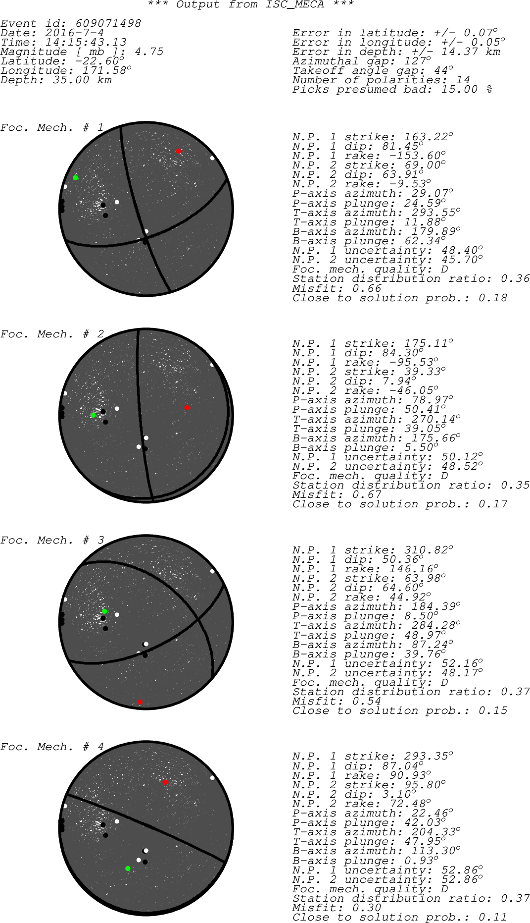 sta chan net loc pol a/m azi dist author irsta PINNC BHZ ND 00 + a 269.08 3.82 ISC PINNC OUENC BHZ ND 00 + a 271.51 4.38 ISC OUENC DZM BHZ G 00 + a 275.38 4.78 ISC DZM NOUC BHZ G 00 + a 274.88 4.91 ISC NOUC KOUNC BHZ ND 00 - a 285.39 7.09 ISC KOUNC MSVF BHZ II 00 - a 52.67 7.77 ISC MSVF MSVF BHZ II 10 - a 52.67 7.77 ISC MSVF MTSU SHZ AU -- + a 274.85 25.92 ISC MTSU AS31 BHZ AU -- + a 260.73 34.60 ISC AS31 SBA B?Z IR C 181.24 55.35 ISC1 SBA CCD BHZ G 10 - a 193.14 58.11 ISC CCD KSM BHZ MY -- - a 283.30 64.26 ISC KSM TROLL BHZ NO -- + a 183.40 85.34 ISC TROLL VNA3 BHZ AW -- - a 179.60 86.41 ISC VNA3 sta - Station code (FDSN) chan - channel code net - Network code (FDSN) loc - Location code (FDSN) pol - Polarity a/m - Automatic or manual pick azi - Event to station azimuth (in degrees) dist - Event to station distance (in degrees) author - Author of the polarity irsta - International registry station code