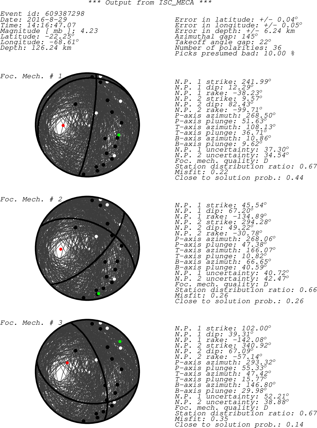 sta chan net loc pol a/m azi dist author irsta LVC B?Z IR C 217.68 0.45 GUC LVC LVC BHZ IU 00 - a 217.58 0.45 ISC LVC LVC HHZ IU 10 + a 217.58 0.45 ISC LVC LVC BHZ IU 10 - a 217.58 0.45 ISC LVC PB09 H?Z IR C 307.86 0.74 GUC PB09 PB09 HHZ CX -- + a 307.86 0.74 ISC PB09 AF01 H?Z IR C 150.06 0.80 GUC AF01 PB06 H?Z IR C 242.91 0.99 GUC PB06 PB06 HHZ CX -- + a 242.91 0.99 ISC PB06 PB15 H?Z IR C 219.64 1.24 GUC PB15 PB15 BHZ CX -- + a 219.64 1.24 ISC PB15 PB15 HHZ CX -- + a 219.64 1.24 ISC PB15 PB07 H?Z IR C 293.71 1.29 GUC PB07 PB07 HHZ CX -- + a 293.71 1.29 ISC PB07 PB04 H?Z IR C 266.51 1.42 GUC PB04 PB04 HHZ CX -- + a 266.51 1.43 ISC PB04 PB01 H?Z IR C 325.82 1.45 GUC PB01 PB01 HHZ CX -- + a 325.82 1.45 ISC PB01 PB02 H?Z IR C 307.71 1.51 GUC PB02 PB02 BHZ CX -- + a 307.71 1.51 ISC PB02 PB02 HHZ CX -- + a 307.71 1.51 ISC PB02 PB10 BHZ CX -- - a 234.62 2.19 ISC PB10 TA01 H?Z IR C 318.71 2.23 GUC TA01 TA01 HHZ C1 -- - a 318.71 2.23 ISC TA01 TA02 H?Z IR C 324.07 2.43 GUC TA02 GO01 B?Z IR C 347.98 2.63 GUC GO01 PB11 HHZ CX -- + a 338.38 2.67 ISC PB11 GO02 BHZ C -- + a 196.99 3.03 ISC GO02 PB16 H?Z IR C 347.69 3.99 GUC PB16 PB16 BHZ CX -- + a 347.69 3.99 ISC PB16 AC01 HHZ C1 -- - a 204.66 4.28 ISC AC01 AC02 HHZ C1 -- - a 185.78 4.59 ISC AC02 AC02 BHZ C1 -- + a 185.78 4.59 ISC AC02 LPAZ SHZ GT 10 - a 4.48 5.95 ISC LPAZ LPAZ BHZ GT 00 + a 4.48 5.95 ISC LPAZ LCO BHZ IU 10 - a 195.20 6.99 ISC LCO sta - Station code (FDSN) chan - channel code net - Network code (FDSN) loc - Location code (FDSN) pol - Polarity a/m - Automatic or manual pick azi - Event to station azimuth (in degrees) dist - Event to station distance (in degrees) author - Author of the polarity irsta - International registry station code