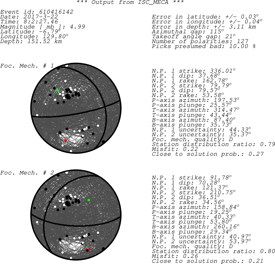 sta chan net loc pol a/m azi dist author irsta BNDI BHZ GE -- - a 2.62 2.26 ISC BNDI BNDI SHZ GE -- - a 2.62 2.26 ISC BNDI SANI BHZ GE -- + a 320.94 6.05 ISC SANI SANI SHZ GE -- + a 320.94 6.05 ISC SANI MTN BHZ AU -- - a 167.79 6.15 ISC MTN KDU BHZ AU -- + a 156.00 6.42 ISC KDU KNRA BHZ AU -- - a 186.49 8.89 ISC KNRA KAPI B?Z IR D 279.49 10.15 MOS KAPI KAPI BHZ II 00 + a 279.49 10.15 ISC KAPI TOLI2 BHZ GE -- + a 310.77 11.95 ISC TOLI2 TOLI2 SHZ GE -- + a 310.77 11.95 ISC TOLI2 FITZ BHZ AU -- - a 199.47 11.95 ISC FITZ PLAI BHZ GE -- - a 259.60 12.08 ISC PLAI PLAI SHZ GE -- - a 259.60 12.08 ISC PLAI GSPH ??? IR c 339.17 13.68 MAN GSPH WRAB B?Z IR C 161.75 13.79 MOS WRAB WRAB BHZ II 00 - a 161.72 13.79 ISC WRAB WRAB BHZ II 10 + a 161.72 13.79 ISC WRAB WB2 BHZ AU -- - a 161.76 13.80 ISC WB2 WB1 BHZ AU -- - a 161.80 13.81 ISC WB1 CTBH ??? IR c 338.19 14.98 MAN CTBH BIPH ??? IR d 346.96 15.27 MAN BIPH CGP ??? IR c 341.35 15.98 MAN CGP QIS BHZ AU -- + a 146.18 16.66 ISC QIS AS13 SHZ AU -- - a 167.22 17.22 ISC AS13 AS14 SHZ AU -- - a 167.18 17.22 ISC AS14 AS31 BHZ AU -- - a 167.21 17.23 ISC AS31 AS11 SHZ AU -- - a 167.24 17.24 ISC AS11 AUALC HHZ S -- + a 167.29 17.25 ISC ASP AUALC BHZ S -- + a 167.29 17.25 ISC ASP AS10 SHZ AU -- - a 167.20 17.27 ISC AS10 MBWA BHZ IU 10 + a 213.31 17.29 ISC MBWA MBWA BHZ IU 00 + a 213.31 17.29 ISC MBWA PSAD1 BHZ AU 00 + a 212.49 17.48 ISC PSAD1 PSAC2 BHZ AU 00 - a 212.10 17.53 ISC PSAC2 PSAD2 BHZ AU 00 - a 211.85 17.54 ISC PSAD2 PSAB2 BHZ AU 00 + a 212.22 17.54 ISC PSAB2 PSAC1 BHZ AU 00 + a 212.39 17.55 ISC PSAC1 PSAA2 BHZ AU 00 - a 212.24 17.55 ISC PSAA2 PSA00 BHZ AU 00 - a 212.23 17.56 ISC PSA00 PSAA3 BHZ AU 00 - a 212.19 17.56 ISC PSAA3 PSAA1 BHZ AU 00 - a 212.24 17.57 ISC PSAA1 PSAB1 BHZ AU 00 - a 212.29 17.57 ISC PSAB1 PSAB3 BHZ AU 00 - a 212.16 17.58 ISC PSAB3 PSAD3 BHZ AU 00 + a 212.26 17.66 ISC PSAD3 WRKA BHZ AU -- - a 184.38 18.20 ISC WRKA KKM BHZ MY -- + a 312.95 18.61 ISC KKM RCP ??? IR d 338.90 19.54 MAN RCP SBM BHZ MY -- + a 297.05 19.81 ISC SBUM TV1H SHZ AU 00 - a 128.48 20.65 ISC TV1H OOD BHZ AU -- - a 165.72 21.62 ISC OOD INKA BHZ AU -- - a 154.80 23.28 ISC INKA MULG BHZ AU -- - a 170.81 23.70 ISC MULG FORT BHZ AU -- - a 183.70 23.92 ISC FORT QLP BHZ AU -- + a 146.72 24.00 ISC QLP LCRK BHZ AU -- + a 162.48 24.82 ISC LCRK KLBR SHZ AU -- + a 203.00 27.12 ISC KLBR STKA BHZ AU -- - a 157.70 27.28 ISC STKA CMSA BHZ AU -- - a 150.92 28.75 ISC CMSA KUM BHZ MY -- - a 291.71 31.47 ISC KULM PHRA BHZ TM -- - a 311.21 38.50 ISC PHRA CHTO BHZ IU 10 + a 310.43 39.66 ISC CHTO NJ2 ??? IR d 345.48 40.02 BJI NJ2 KMI ??? IR d 321.27 41.23 BJI KMI ENH BHZ IC 00 + a 333.17 41.69 ISC ENH ENH HHZ IC 10 + a 333.17 41.69 ISC ENH ENH BHZ IC 60 + a 333.17 41.69 ISC ENH LYN ??? IR c 339.37 44.27 BJI LYN HNS ??? IR c 343.29 46.17 BJI HNS BJT BHZ IC 00 + a 345.96 48.25 ISC BJT BJT HHZ IC 10 - a 345.96 48.25 ISC BJT LZH ??? IR c 332.04 49.13 BJI LZH MALK BHZ GE -- + a 286.35 51.38 ISC MALK LSA HHZ IC 10 - a 316.32 51.93 ISC LSA LSA BHZ IC 00 - a 316.32 51.93 ISC LSA BNX ??? IR d 357.88 52.34 BJI BNX ULN BHZ IU 10 + a 342.12 58.01 ISC ULN ULN BHZ IU 00 + a 342.12 58.01 ISC ULN ULN B?Z IR C 342.12 58.01 MOS ULN NIL BHZ II 10 - a 310.85 66.92 ISC NIL PDGK BHZ KZ -- + a 322.57 67.52 ISC PDGK MKAR BHZ KZ -- + a 326.86 67.94 ISC MKAR MK31 B?Z IR C 326.86 67.95 MOS MK31 ASAI BHZ KC -- - a 319.10 68.08 ISC ASAI MAKZ BHZ IU 00 + a 326.73 68.12 ISC MAKZ MAKZ HHZ IU 00 - a 326.73 68.12 ISC MAKZ KDJ BHZ KR -- - a 320.49 68.28 ISC KDJ YAK BHZ IU 00 + a 359.94 68.62 ISC YAK BOOM BHZ KR -- - a 320.31 69.26 ISC BOOM AAK BHZ II 10 - a 319.86 70.26 ISC AAK AAK BHZ II 00 + a 319.86 70.26 ISC AAK AAK B?Z IR C 319.86 70.26 MOS AAK GARM HHZ TJ -- - a 314.90 71.38 ISC GAR ARK BHZ KR -- - a 318.12 71.48 ISC ARK SEY B?Z IR C 10.67 71.64 MOS SEY CHGR HHZ TJ -- - a 314.17 72.06 ISC CHGR KUR11 BHZ KZ -- + a 328.59 72.14 ISC KUR11 KUR12 BHZ KZ -- + a 328.58 72.16 ISC KUR12 KUR13 BHZ KZ -- + a 328.57 72.17 ISC KUR13 KUR10 BHZ KZ -- + a 328.45 72.19 ISC KUR10 KUR14 BHZ KZ -- + a 328.56 72.19 ISC KUR14 KUR09 BHZ KZ -- + a 328.47 72.20 ISC KUR09 KUR08 BHZ KZ -- + a 328.49 72.21 ISC KUR08 KUR15 BHZ KZ -- + a 328.56 72.21 ISC KUR15 KUR07 BHZ KZ -- + a 328.51 72.22 ISC KUR07 KUR06 BHZ KZ -- + a 328.53 72.22 ISC KUR06 KUR21 BHZ KZ -- + a 328.55 72.23 ISC KUR21 KURK BHZ II 00 + a 328.66 72.24 ISC KURK KURK BHZ II 10 + a 328.66 72.24 ISC KURK KUR05 BHZ KZ -- + a 328.57 72.24 ISC KUR05 KURK B?Z IR C 328.66 72.24 MOS KURK KUR04 BHZ KZ -- + a 328.58 72.25 ISC KUR04 KUR16 BHZ KZ -- + a 328.54 72.25 ISC KUR16 KUR03 BHZ KZ -- + a 328.61 72.26 ISC KUR03 KUR02 BHZ KZ -- + a 328.62 72.26 ISC KUR02 KUR17 BHZ KZ -- + a 328.53 72.27 ISC KUR17 KUR01 BHZ KZ -- + a 328.64 72.27 ISC KUR01 KUR18 BHZ KZ -- + a 328.52 72.29 ISC KUR18 KUR19 BHZ KZ -- + a 328.51 72.31 ISC KUR19 KUR20 BHZ KZ -- + a 328.50 72.32 ISC KUR20 KKAR BHZ KZ -- + a 318.83 73.06 ISC KKAR OTUK BHZ KZ -- + a 324.18 74.36 ISC OTUK BRVK B?Z IR C 327.86 77.86 MOS BRVK BRVK BHZ II 10 + a 327.85 77.86 ISC BRVK BRVK BHZ II 00 + a 327.85 77.86 ISC BRVK UOSS BHZ II 00 + a 297.15 78.15 ISC UOSS TIXI B?Z IR C 359.70 78.28 MOS TIXI BILL S?Z IR C 13.17 78.96 MOS BILL NRIK B?Z IR C 346.03 81.31 MOS NRIK ABKAR BHZ KZ -- + a 321.62 82.22 ISC ABKAR ARU B?Z IR C 328.15 85.43 MOS ARU KIRV B?Z IR C 328.90 90.76 MOS KIRV KBZ B?Z IR C 313.57 92.41 MOS KBZ sta - Station code (FDSN) chan - channel code net - Network code (FDSN) loc - Location code (FDSN) pol - Polarity a/m - Automatic or manual pick azi - Event to station azimuth (in degrees) dist - Event to station distance (in degrees) author - Author of the polarity irsta - International registry station code