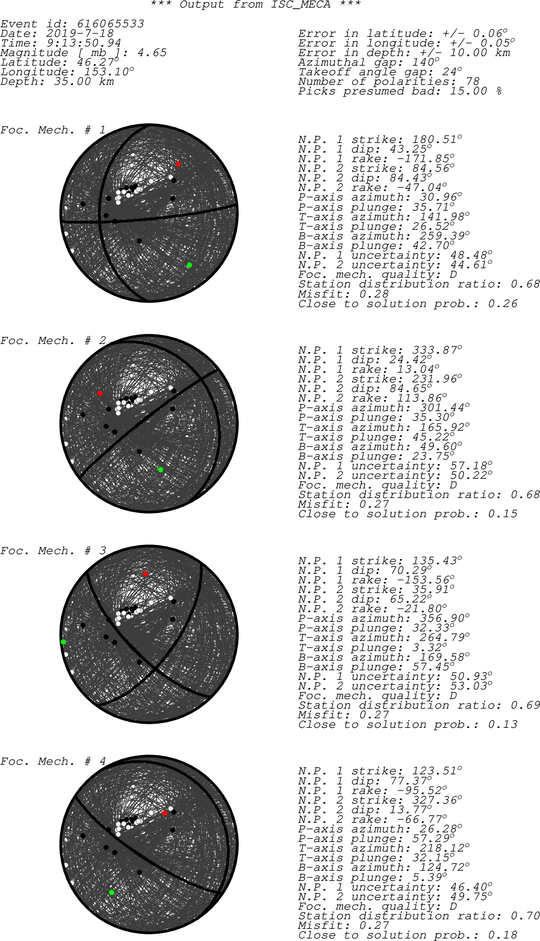 sta chan net loc pol a/m azi dist author irsta KUR B?Z IR D 256.11 3.81 MOS KUR NMR S?Z IR D 243.72 5.99 MOS NMR BNX ??? IR c 277.62 17.84 BJI BNX HNS ??? IR c 266.53 29.71 BJI HNS ULN B?Z IR C 289.98 31.05 MOS ULN D19K BHZ TA -- - a 30.56 33.06 ISC D19K D20K BHZ TA -- - a 30.45 33.66 ISC D20K E20K BHZ TA -- - a 31.32 33.69 ISC E20K POKR BHZ TA -- + a 37.57 36.70 ISC POKR KURK B?Z IR C 303.99 47.63 MOS KURK KUR11 BHZ KZ -- - a 303.82 47.64 ISC KUR11 KUR12 BHZ KZ -- - a 303.84 47.65 ISC KUR12 KUR01 BHZ KZ -- - a 304.02 47.66 ISC KUR01 KUR02 BHZ KZ -- - a 303.99 47.67 ISC KUR02 KUR13 BHZ KZ -- - a 303.86 47.67 ISC KUR13 KUR03 BHZ KZ -- - a 303.97 47.68 ISC KUR03 KUR14 BHZ KZ -- - a 303.87 47.69 ISC KUR14 KUR04 BHZ KZ -- - a 303.95 47.69 ISC KUR04 KUR15 BHZ KZ -- - a 303.89 47.70 ISC KUR15 KUR05 BHZ KZ -- - a 303.93 47.71 ISC KUR05 KUR21 BHZ KZ -- - a 303.91 47.72 ISC KUR21 KUR06 BHZ KZ -- - a 303.88 47.73 ISC KUR06 KUR16 BHZ KZ -- - a 303.92 47.73 ISC KUR16 KUR07 BHZ KZ -- - a 303.86 47.74 ISC KUR07 KUR17 BHZ KZ -- - a 303.94 47.75 ISC KUR17 KUR08 BHZ KZ -- - a 303.84 47.76 ISC KUR08 KUR09 BHZ KZ -- - a 303.82 47.77 ISC KUR09 KUR18 BHZ KZ -- - a 303.96 47.77 ISC KUR18 KUR10 BHZ KZ -- - a 303.80 47.78 ISC KUR10 KUR20 BHZ KZ -- - a 303.99 47.80 ISC KUR20 BRVK B?Z IR C 309.79 51.20 MOS BRVK CMAR B?Z IR C 256.69 52.25 MOS CMAR KDJ BHZ KR -- - a 294.78 52.63 ISC KDJ BOOM BHZ KR -- - a 295.79 53.22 ISC BOOM ASAI BHZ KC -- - a 293.85 53.71 ISC ASAI AAK B?Z IR C 296.66 54.04 MOS AAK MNAS BHZ KR -- - a 297.50 55.35 ISC MNAS ARTI B?Z IR C 317.72 55.47 MOS ARTI ABKAR BHZ KZ -- - a 310.06 58.73 ISC ABKAR NIL BHZ II 10 - a 288.62 60.04 ISC NIL SUMG BHZ GE 10 - a 3.95 61.18 ISC SUMG OBN B?Z IR C 325.67 65.70 MOS OBN VSU B?Z IR C 332.55 66.64 MOS VSU WRA B?Z IR C 199.04 68.06 MOS WRA KIV ??? IR c 314.33 71.13 BUC KIV KIEV BHZ IU 00 + a 326.27 71.94 ISC KIEV KIEV BHZ IU 10 + a 326.27 71.94 ISC KIEV KIEV ??? IR d 326.27 71.95 BUC KIEV ANMO B?Z IR C 58.10 72.09 MOS ANMO GNI B?Z IR C 310.42 72.84 MOS GNI OZAP ??? IR d 309.79 74.32 BUC OZAP BUR31 BHZ RO -- - a 326.63 75.97 ISC BUR08 BURAR BHZ RO -- - a 326.63 75.97 ISC BUR08 BURAR ??? IR c 326.61 75.99 BUC BURAR BURAR S?Z IR C 326.61 75.99 MOS BURAR TESR ??? IR c 325.13 76.34 BUC TESR BZK ??? IR d 317.98 76.81 BUC BZK VRI ??? IR c 324.71 76.83 BUC VRI VRI S?Z IR C 324.71 76.83 MOS VRI TPGR ??? IR d 323.11 76.97 BUC TPGR MLR ??? IR d 324.95 77.45 BUC MLR MLR S?Z IR D 324.95 77.45 MOS MLR VRAC ??? IR c 332.53 77.57 BUC VRAC ZEU BHZ TH -- - a 335.88 77.76 ISC ZEU VOIR ??? IR d 325.45 77.85 BUC VOIR VOIR S?Z IR D 325.45 77.85 MOS VOIR KALB ??? IR d 322.24 78.14 BUC KALB SIRR ??? IR c 327.94 78.45 BUC SIRR SURR ??? IR d 327.38 78.71 BUC SURR BRTR B?Z IR C 316.79 78.73 MOS BRTR GZR ??? IR d 326.79 78.77 BUC GZR BZS ??? IR d 327.62 79.02 BUC BZS BZS S?Z IR D 327.62 79.02 MOS BZS KIRS ??? IR d 316.25 79.07 BUC KIRS BTNL SHZ IR - 339.30 79.39 UCC BTNL MEM SHZ IR - 339.38 79.39 UCC MEM BSTI SHZ IR - 339.64 79.53 UCC BSTI MORH ??? IR c 329.74 79.58 BUC MORH BCLA SHZ IR - 339.73 79.74 UCC BCLA KOVH HHZ HU -- - a 330.01 79.88 ISC KOVH BMRD BHZ IR - 340.01 79.98 UCC BMRD RCHB BHZ IR - 339.68 80.00 UCC RCHB GCIS BHZ SL -- - a 331.43 80.91 ISC GCIS sta - Station code (FDSN) chan - channel code net - Network code (FDSN) loc - Location code (FDSN) pol - Polarity a/m - Automatic or manual pick azi - Event to station azimuth (in degrees) dist - Event to station distance (in degrees) author - Author of the polarity irsta - International registry station code