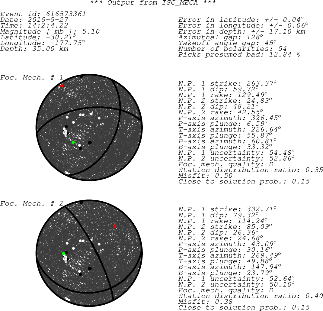 sta chan net loc pol a/m azi dist author irsta GLKZ HHZ NZ 10 + a 351.20 0.96 ISC GLKZ PKGZ EHZ NZ 10 - a 203.25 8.38 ISC PKGZ MUGZ EHZ NZ 10 - a 207.30 9.40 ISC MUGZ RTZ HHZ NZ 10 - a 206.01 9.44 ISC RTZ CMSA BHZ AU -- - a 258.11 31.31 ISC CMSA QLP BHZ AU -- - a 266.68 33.53 ISC QLP INKA BHZ AU 00 + a 263.36 36.25 ISC INKA AUMBR BHZ S1 -- - a 250.70 36.29 ISC AUMBR HTT BHZ AU 10 - a 253.49 36.76 ISC HTT YAPP BHZ AU 00 - a 255.93 37.49 ISC YAPP LCRK BHZ AU 00 - a 258.18 37.82 ISC LCRK PMG S?Z IR D 294.94 38.72 MOS PMG OOD BHZ AU 00 - a 261.47 40.58 ISC OOD MULG BHZ AU 00 + a 257.28 41.37 ISC MULG WR10 BHZ AU -- - a 271.91 44.12 ISC WR0 WR9 BHZ AU -- + a 271.90 44.15 ISC WR9 WR7 BHZ AU -- + a 271.88 44.18 ISC WR7 WR6 BHZ AU -- - a 271.87 44.20 ISC WR6 WR5 BHZ AU -- + a 271.86 44.22 ISC WR5 WR4 BHZ AU -- + a 271.85 44.24 ISC WR4 WR3 BHZ AU -- + a 271.84 44.26 ISC WR3 WC3 BHZ AU -- - a 271.82 44.27 ISC WC3 WR2 BHZ AU -- + a 271.83 44.28 ISC WR2 WC2 BHZ AU -- + a 271.86 44.29 ISC WC2 WB1 BHZ AU -- + a 271.81 44.29 ISC WB1 WB2 BHZ AU -- + a 271.83 44.29 ISC WB2 WC4 BHZ AU -- + a 271.80 44.30 ISC WC4 WB3 BHZ AU -- - a 271.86 44.30 ISC WB3 WRAB B?Z IR C 271.84 44.30 MOS WRAB WB4 BHZ AU -- + a 271.89 44.30 ISC WB4 WR1 BHZ AU -- - a 271.83 44.30 ISC WR1 WB5 BHZ AU -- + a 271.93 44.31 ISC WB5 WB7 BHZ AU -- + a 271.98 44.31 ISC WB7 WC1 BHZ AU -- - a 271.85 44.31 ISC WC1 WB6 BHZ AU -- - a 271.96 44.31 ISC WB6 WB8 BHZ AU -- + a 272.02 44.32 ISC WB8 WB9 BHZ AU -- - a 272.05 44.33 ISC WB9 WB10 BHZ AU -- + a 272.08 44.33 ISC WB0 DRV BHZ G 00 + a 202.51 44.40 ISC DRV FORT BHZ AU 00 + a 254.88 46.30 ISC FORT CASY BHZ IU 00 - a 207.82 55.40 ISC CASY CASY BHZ IU 10 - a 207.82 55.40 ISC CASY KKM BHZ MY -- - a 287.86 72.70 ISC KKM TROLL BHZ IR c 180.09 78.06 AWI TROLL MAJO B?Z IR D 325.12 78.21 MOS MAJO SNAA BHZ IR c 178.36 78.33 AWI SNAA SNAA B?Z IR C 178.36 78.33 MOS SNAA VNA3 BHZ IR c 176.09 78.47 AWI VNA3 VNA3 BHZ AW -- + a 176.09 78.48 ISC VNA3 VNA2 BHZ IR c 176.78 78.91 AWI VNA2 VNA2 BHZ AW -- + a 176.78 78.91 ISC VNA2 VNA1 BHZ IR c 176.45 79.14 AWI VNA1 YSS S?Z IR D 334.05 84.67 MOS YSS PFO S?Z IR D 47.21 85.92 MOS PFO SDPT BHZ AT -- - a 9.78 86.50 ISC SDPT BNX ??? IR d 325.07 90.48 BJI BNX HNS ??? IR d 312.56 92.26 BJI HNS MA2 S?Z IR D 344.56 93.17 MOS MA2 ANMO S?Z IR C 51.20 93.30 MOS ANMO COLA S?Z IR D 12.40 97.61 MOS COLA sta - Station code (FDSN) chan - channel code net - Network code (FDSN) loc - Location code (FDSN) pol - Polarity a/m - Automatic or manual pick azi - Event to station azimuth (in degrees) dist - Event to station distance (in degrees) author - Author of the polarity irsta - International registry station code